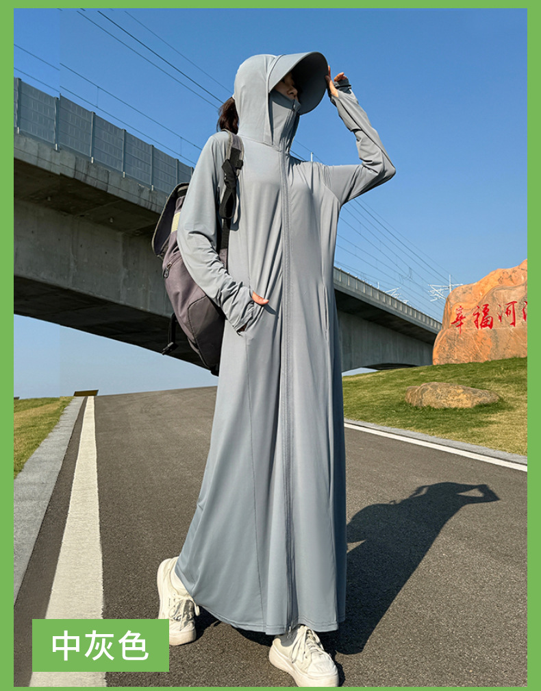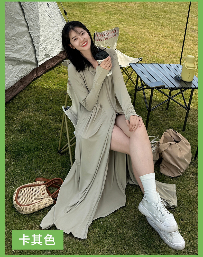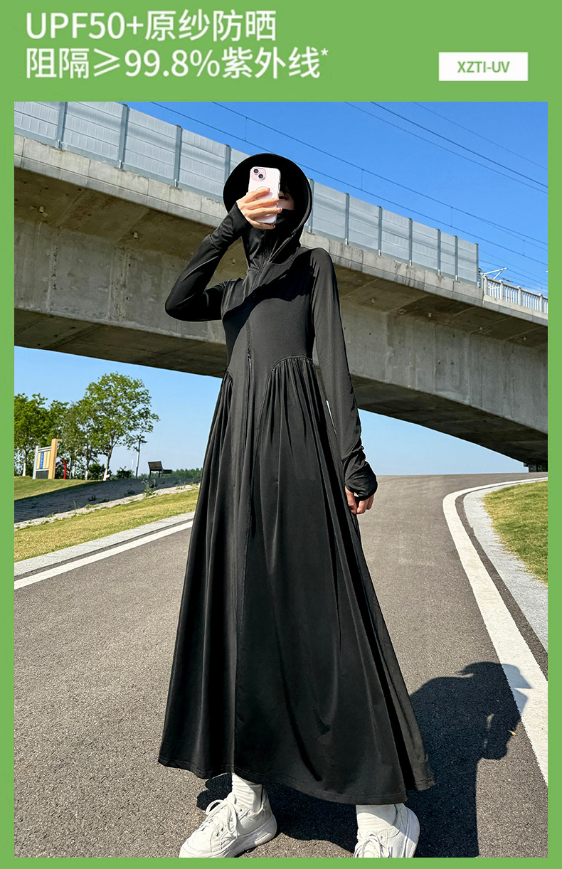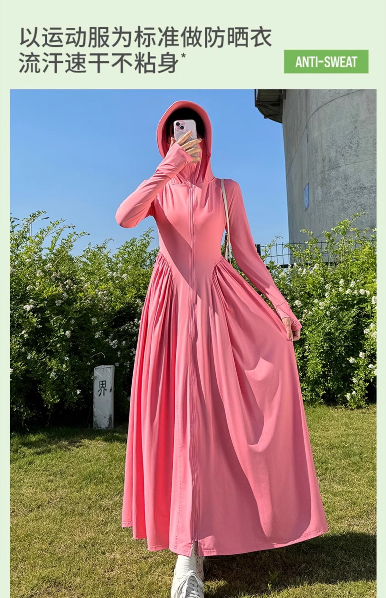 【无”惧“烈阳❗️全身长款防晒衣】采用云朵原纱冰丝面料,多向阳隔紫外线,时刻保持清爽。超宽松的版型设计,包容更多身形显腿部纤细,防紫外线修身收腰冰丝裙摆防晒服L