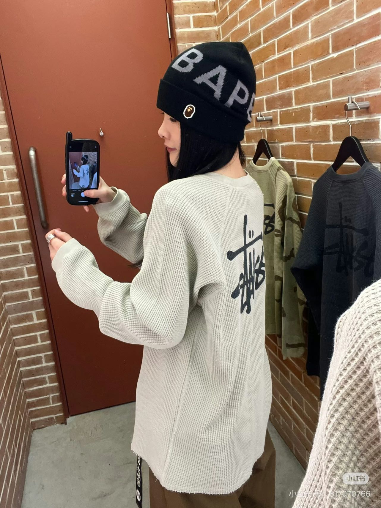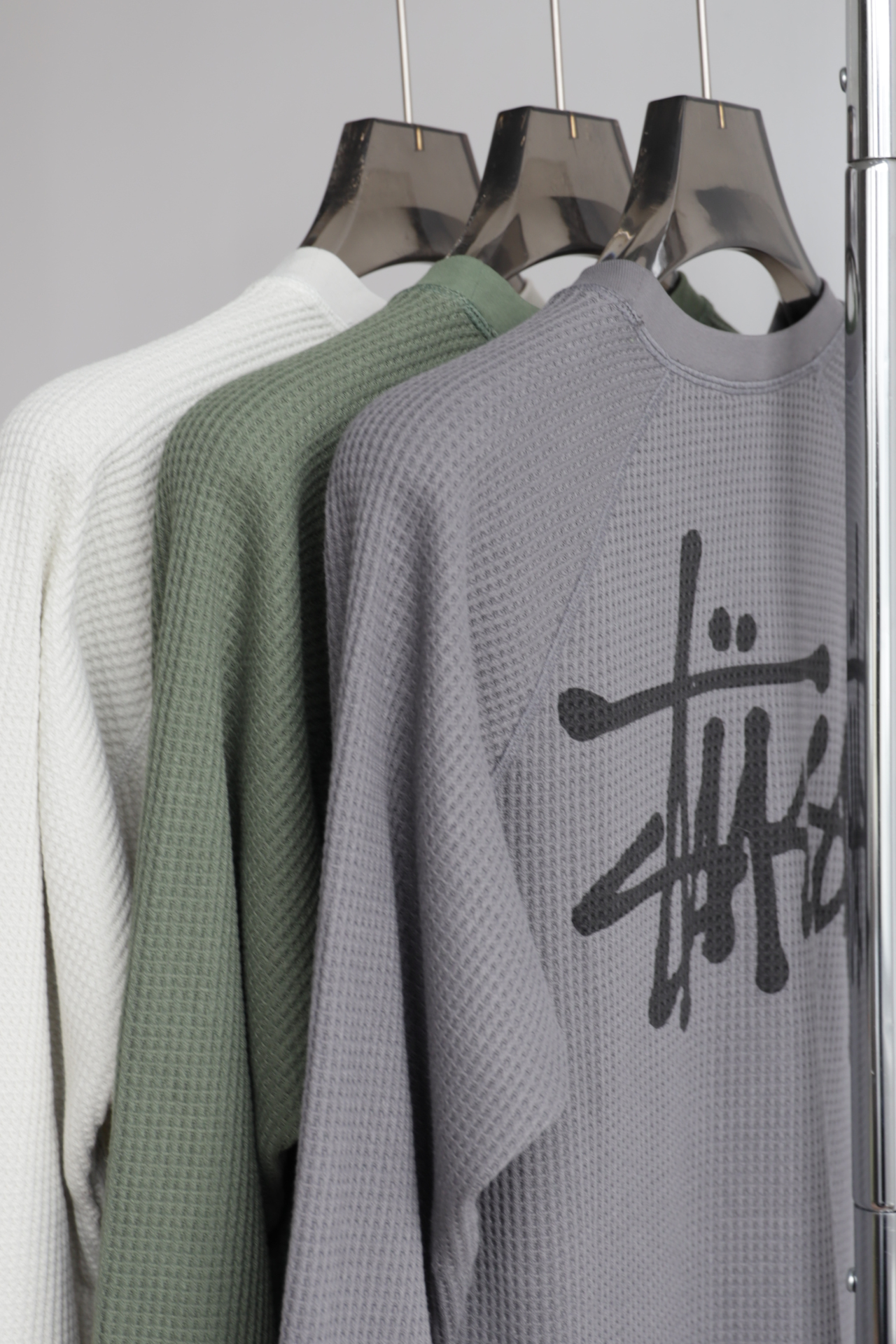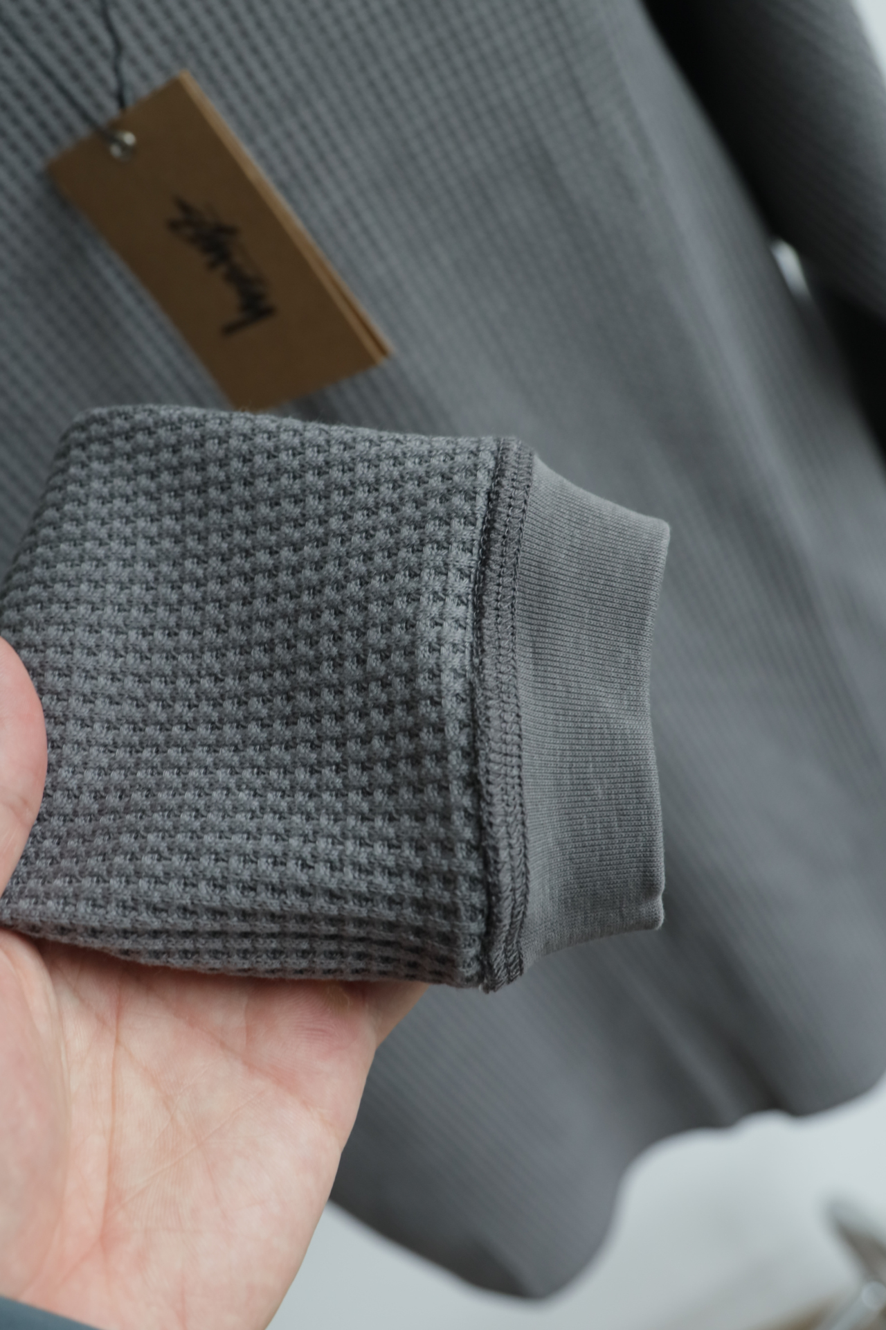 华夫格面料接缝处均采用包边工艺,经典涂鸦标志性logo