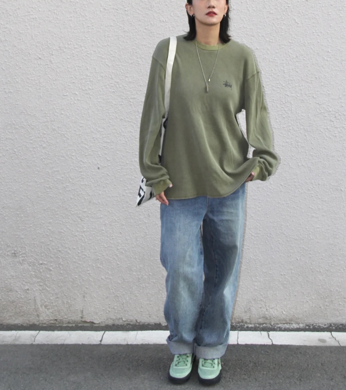 微宽松立体剪裁,插肩袖结构模糊肩线界限,包容不同身形,男女皆可驾驭的松弛感。
