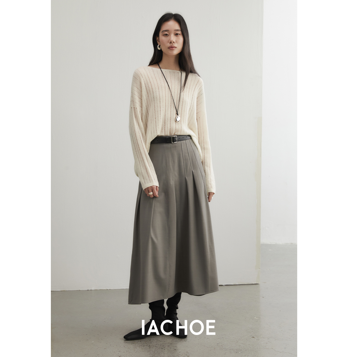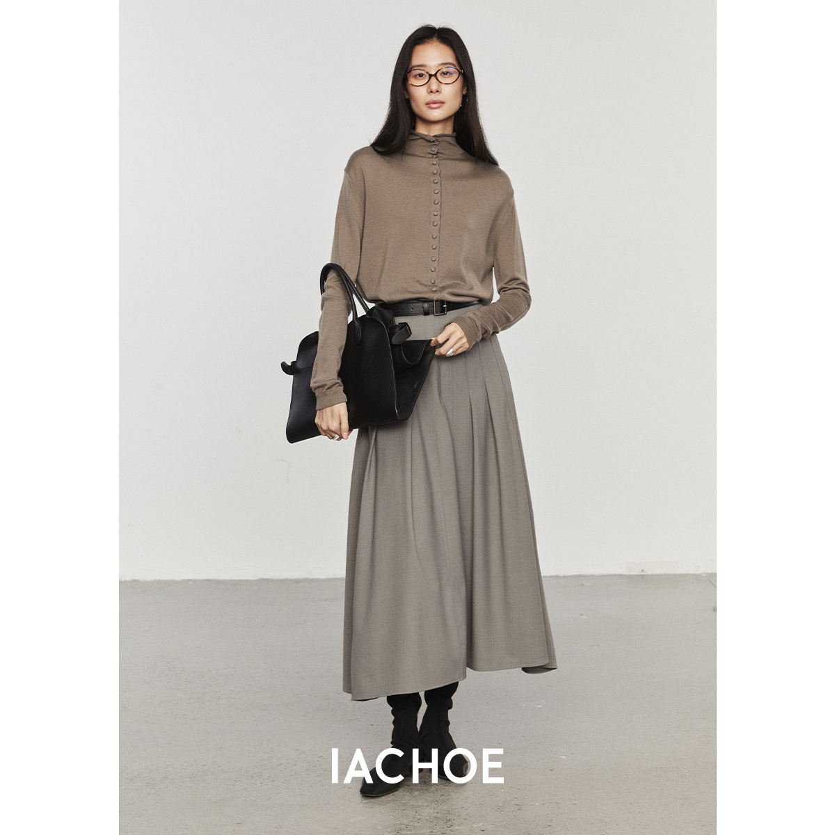 棉仓3561517004-IACHOE【灰色蔷薇】百褶裙中长款显瘦