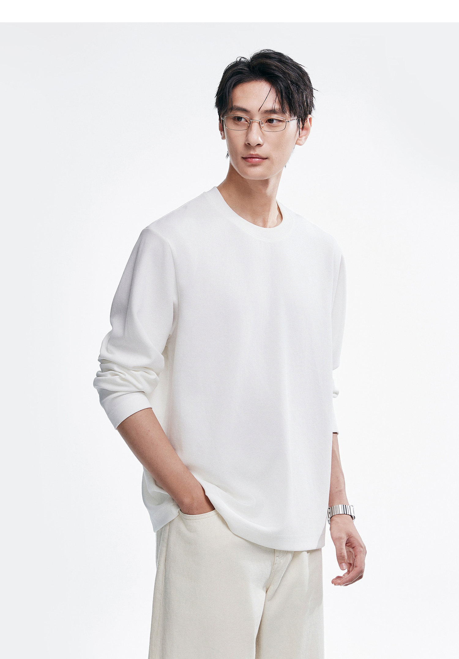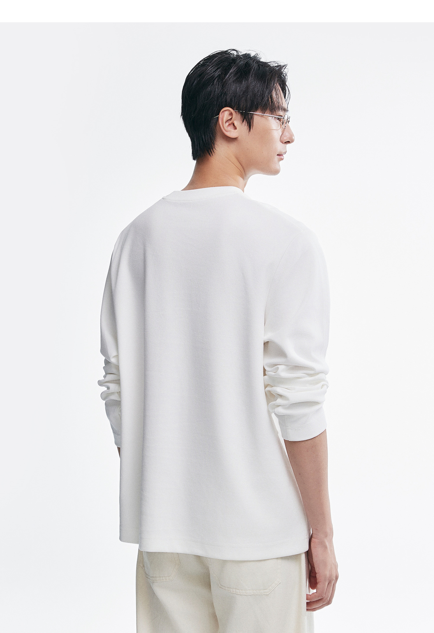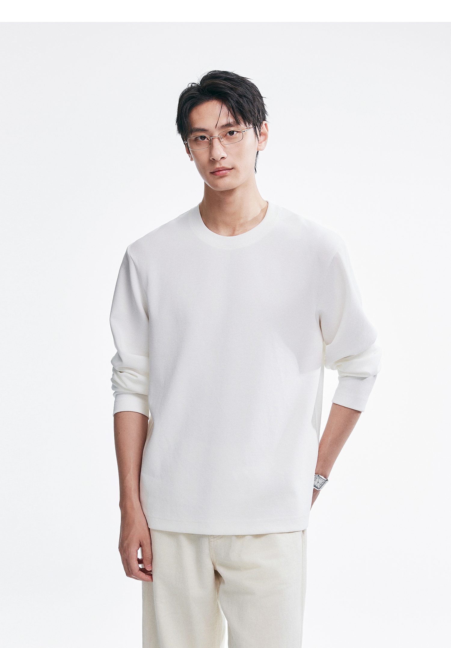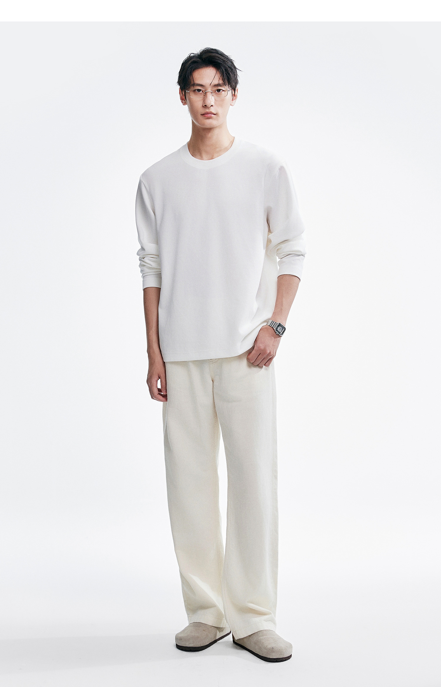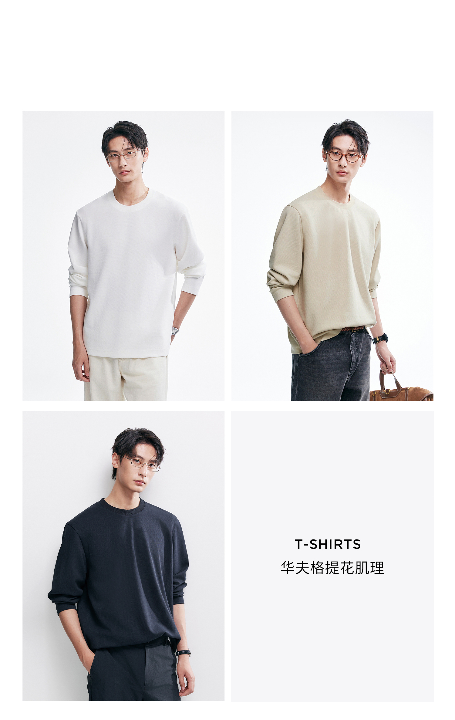 棉仓366801004-微宽松华夫格肌理长袖T恤男 秋季重磅男士打底衫体恤可外穿