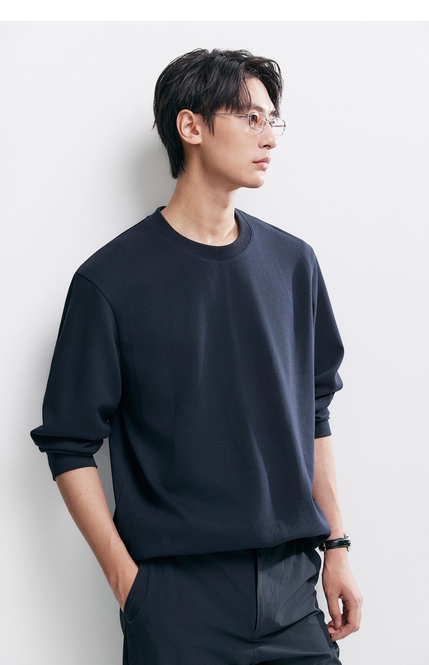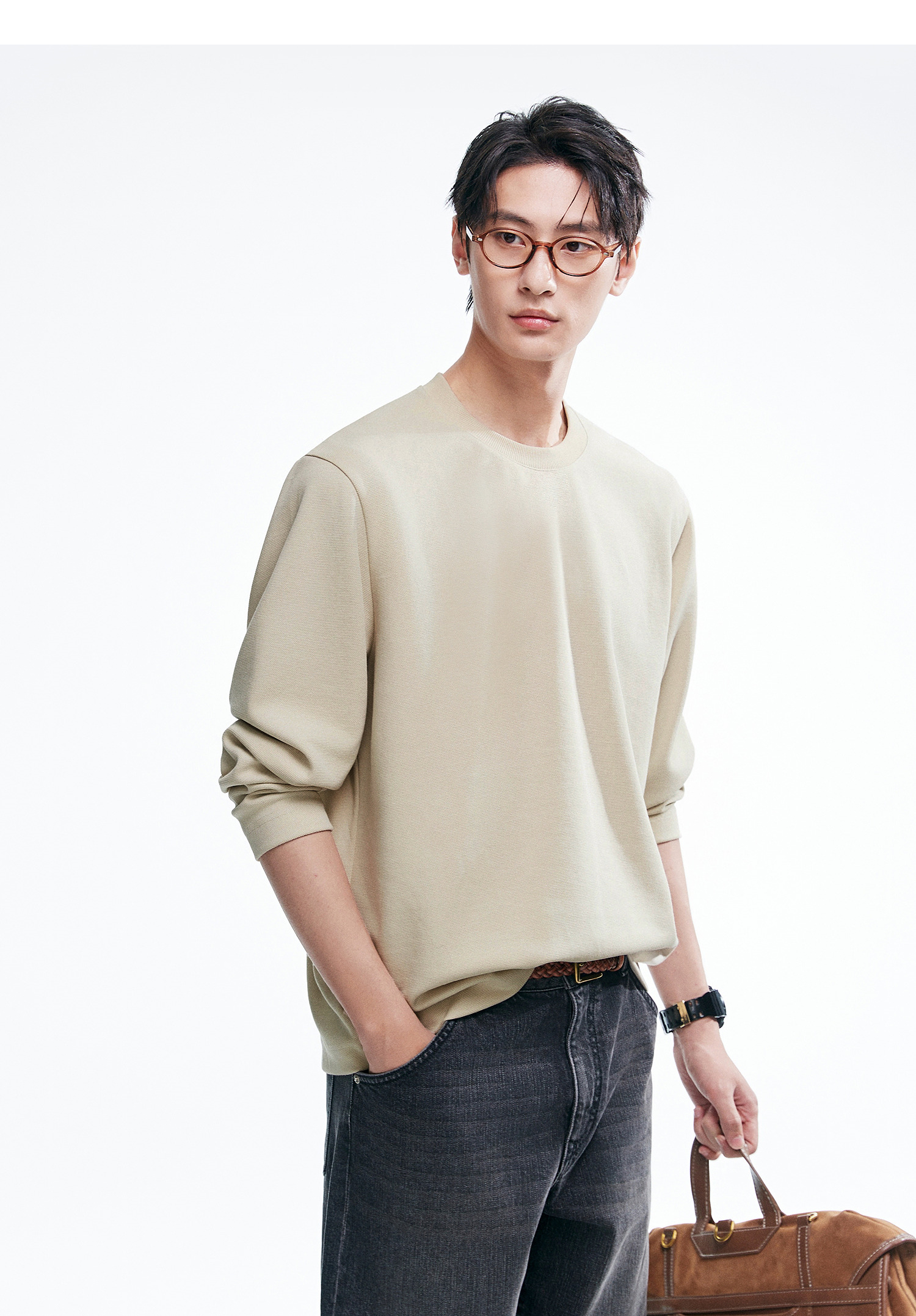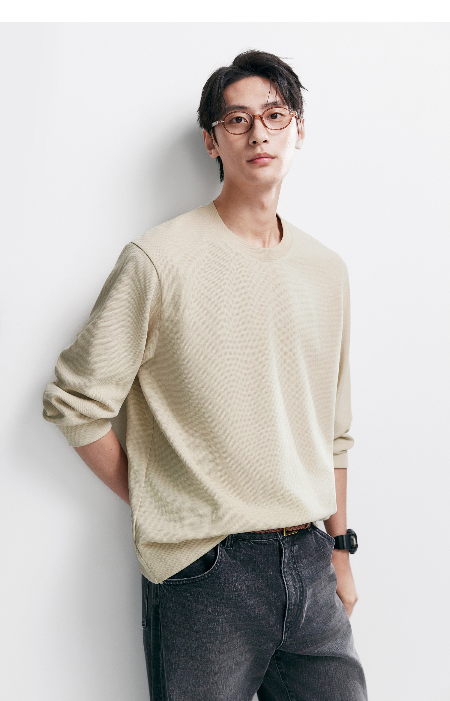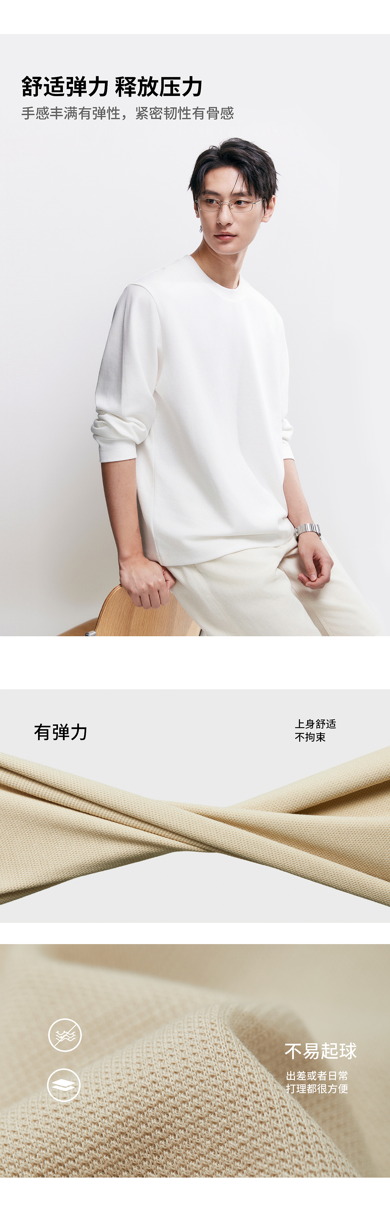 棉仓366801004-微宽松华夫格肌理长袖T恤男 秋季重磅男士打底衫体恤可外穿