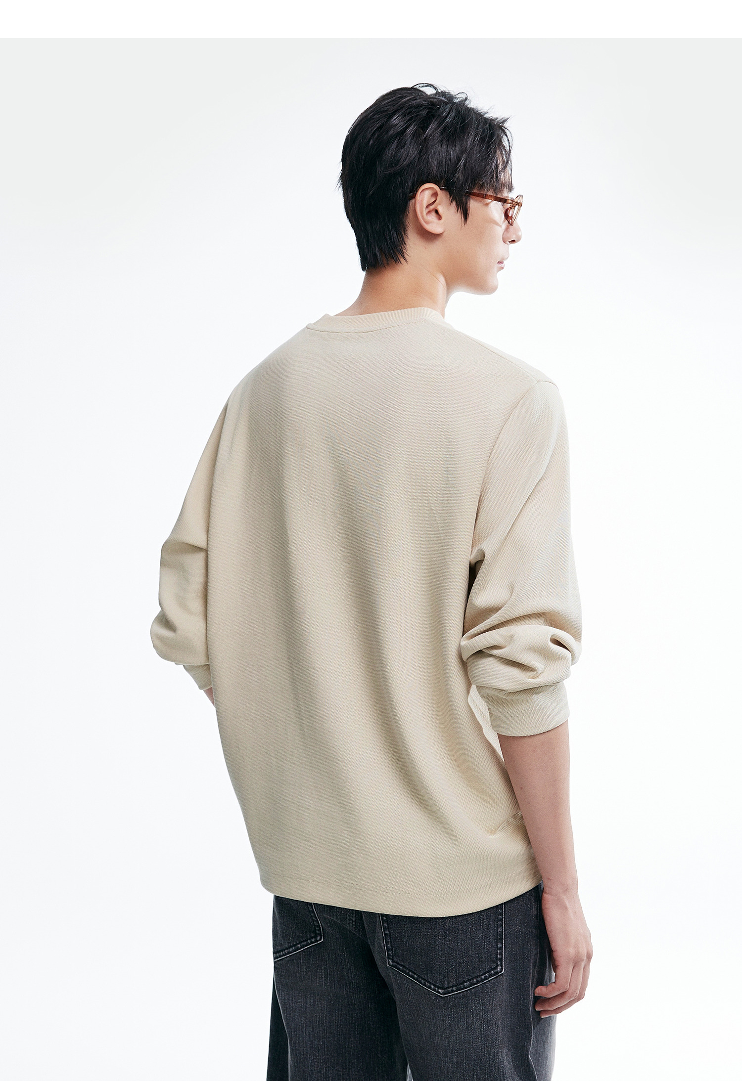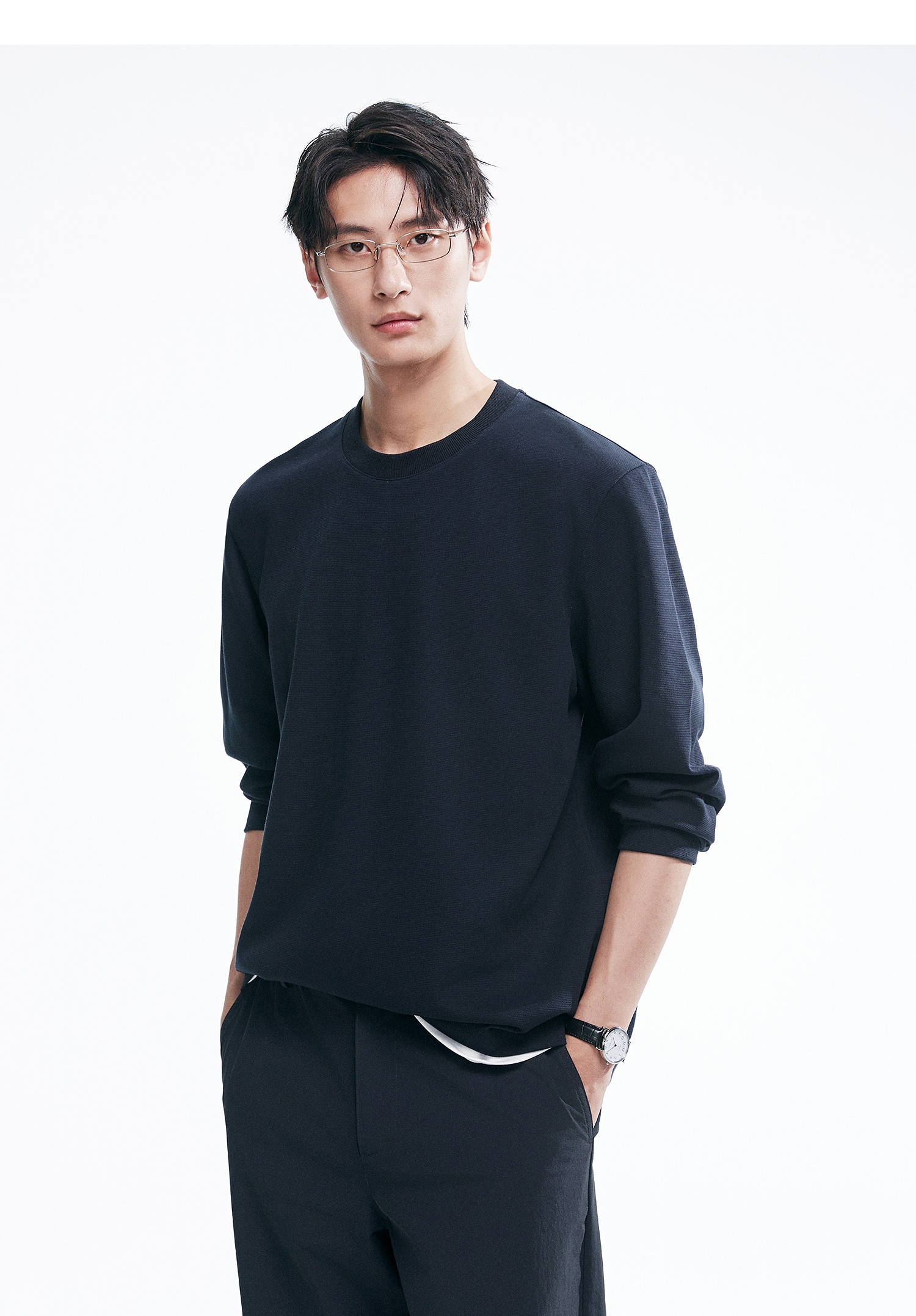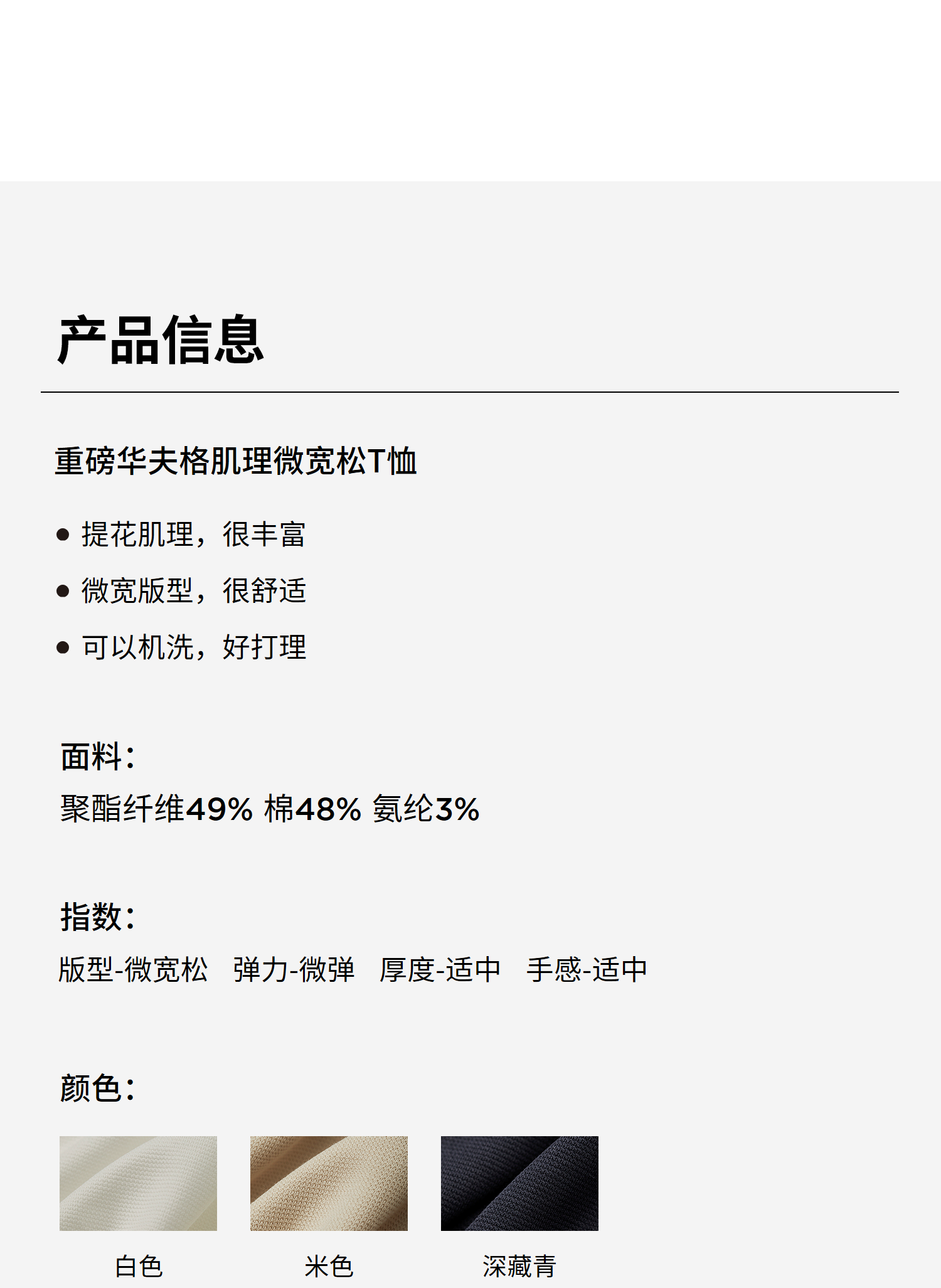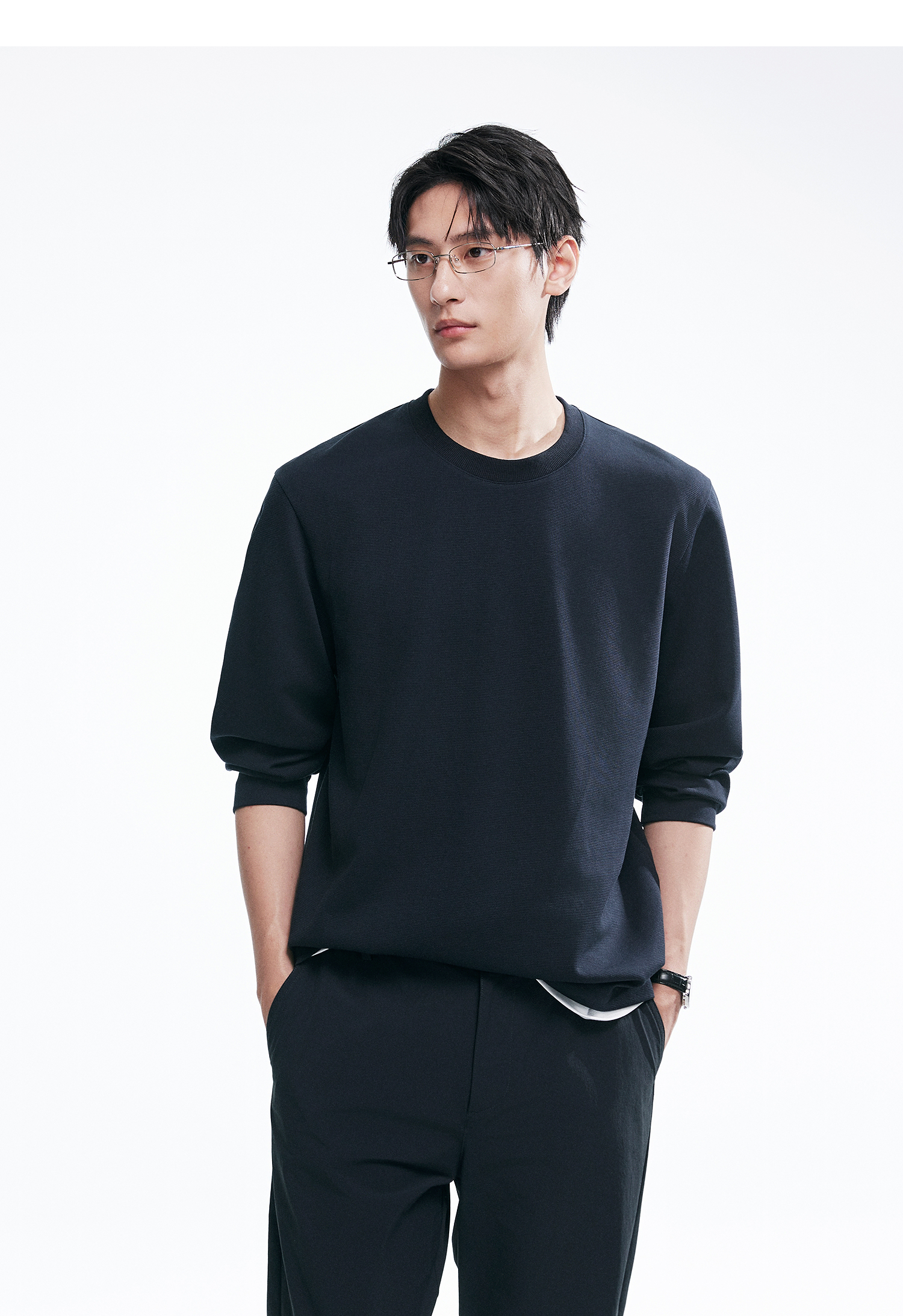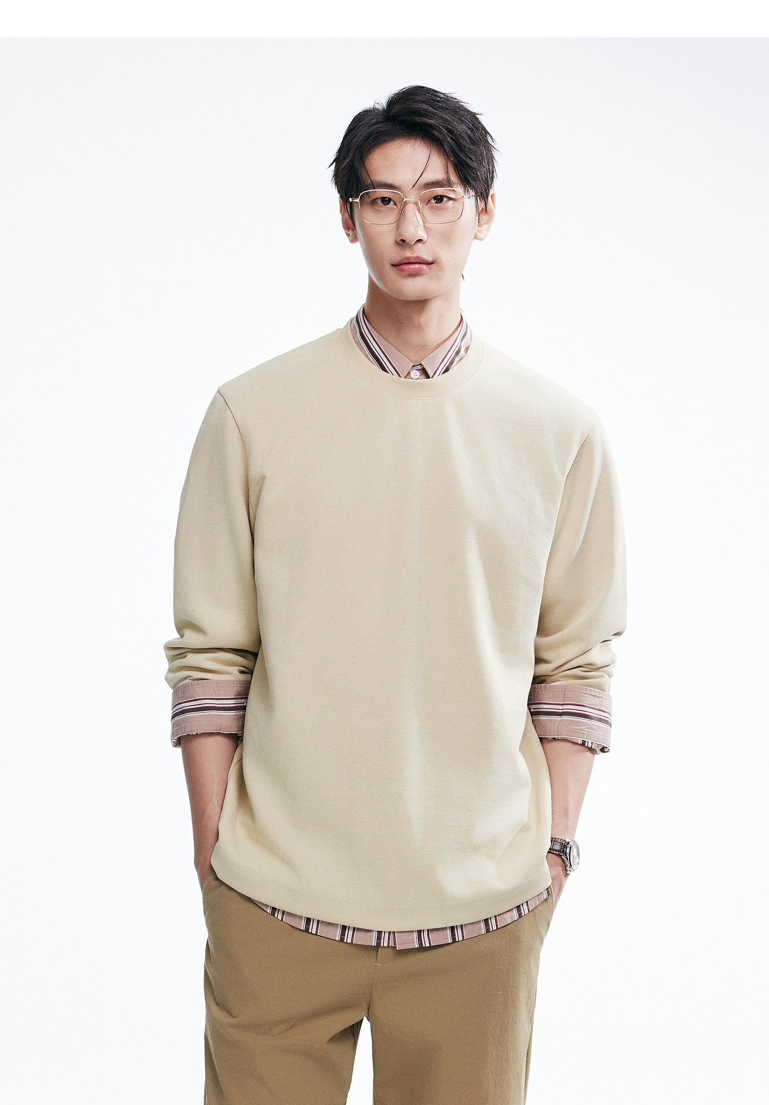 棉仓366801004-微宽松华夫格肌理长袖T恤男 秋季重磅男士打底衫体恤可外穿