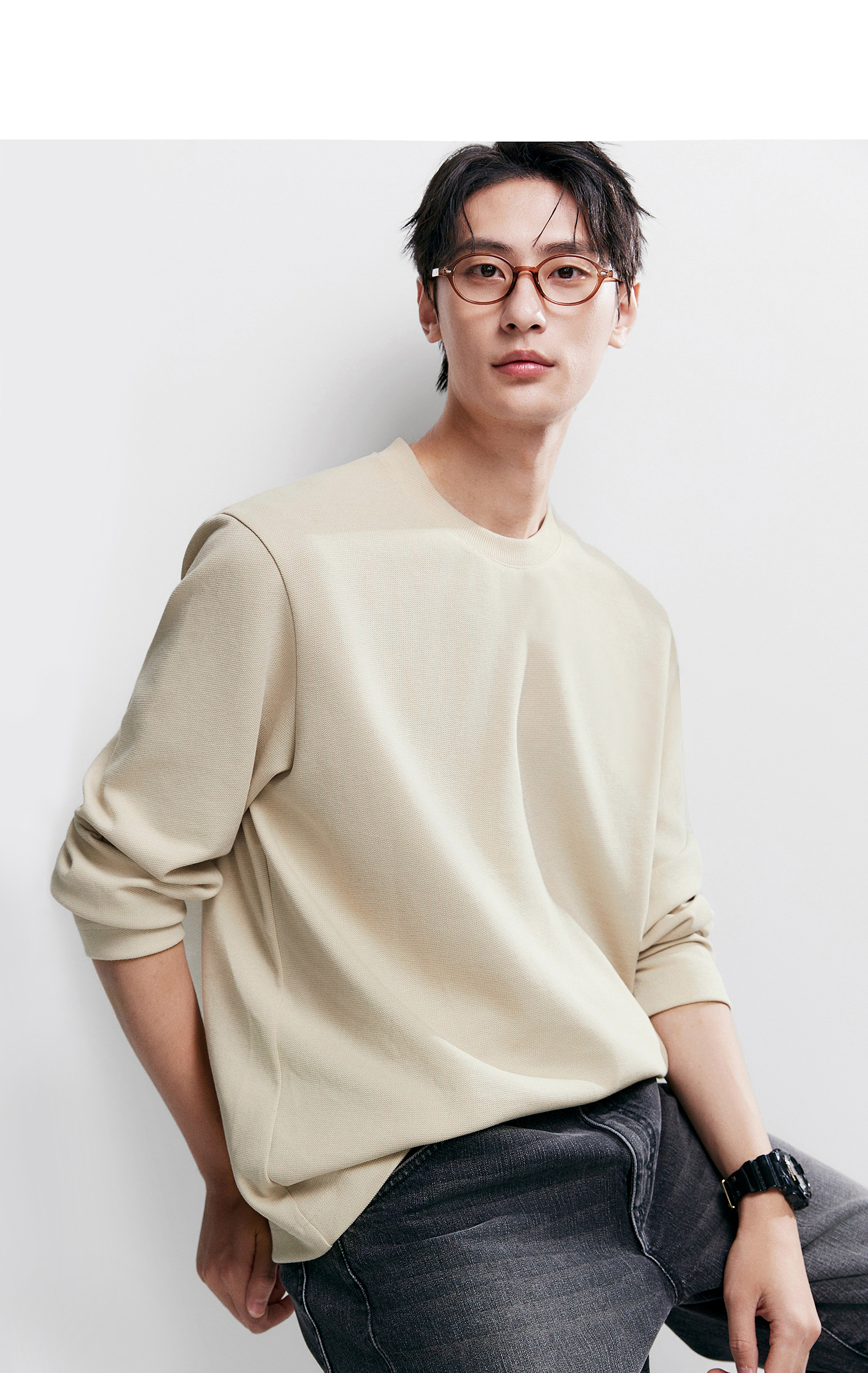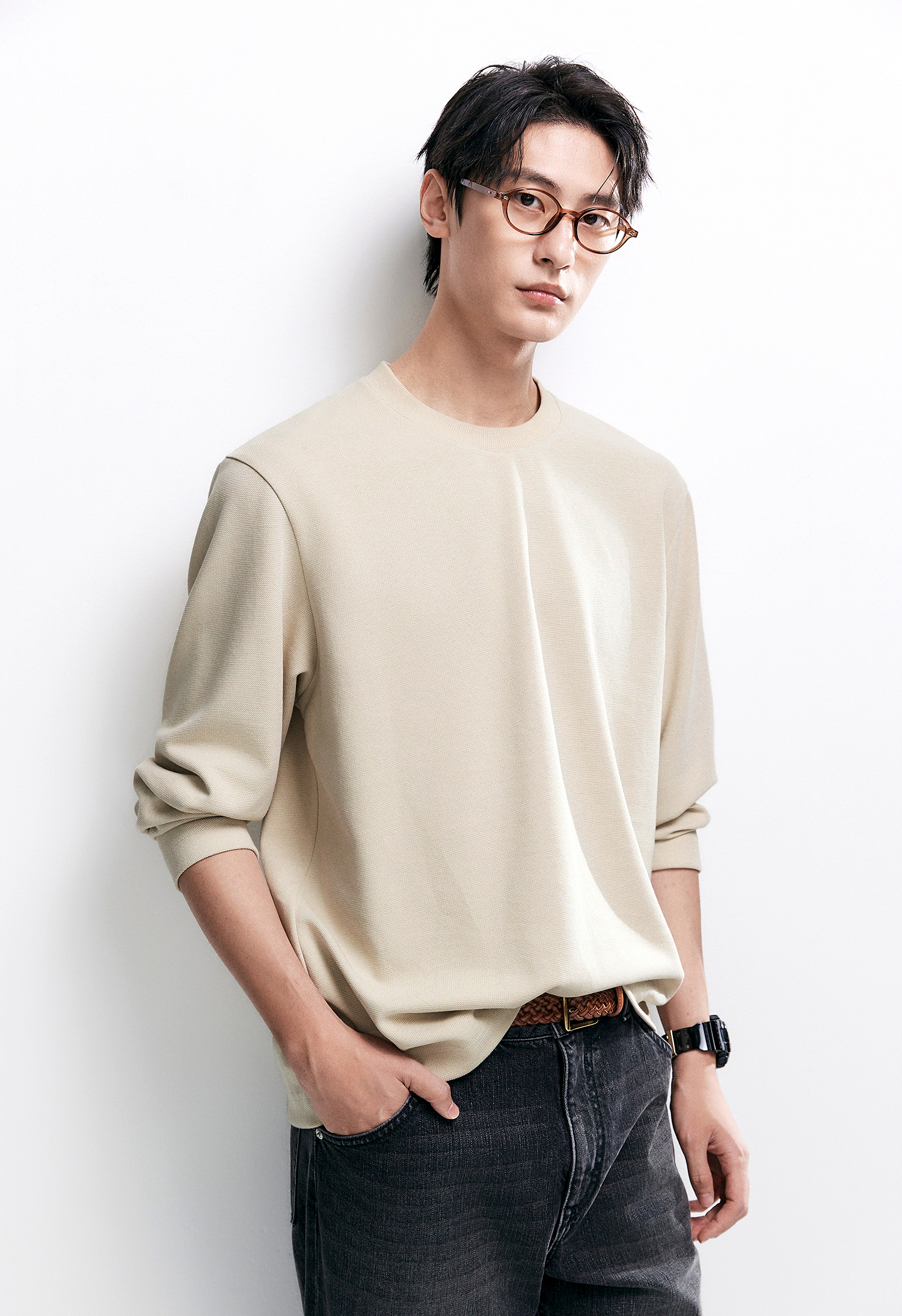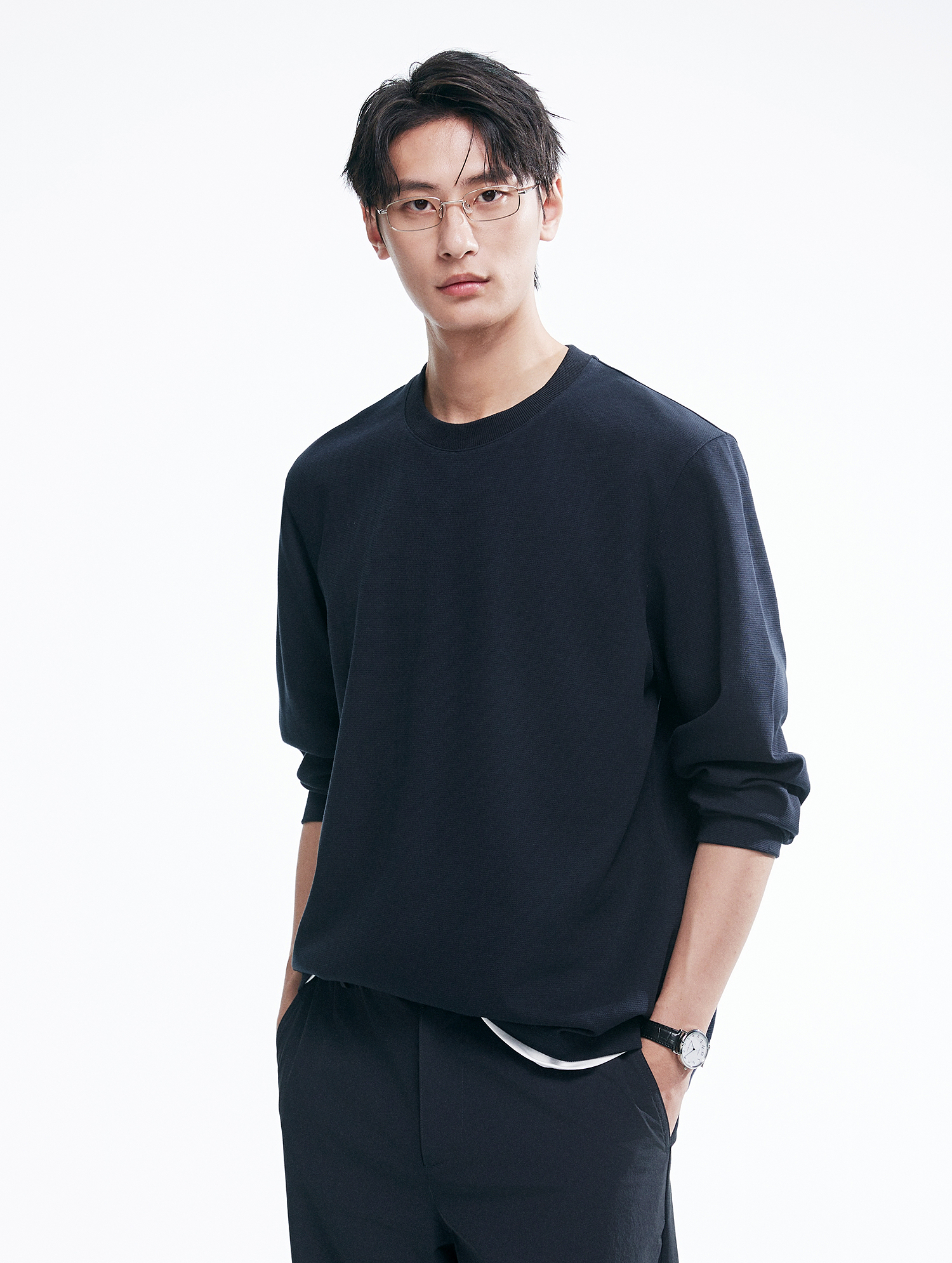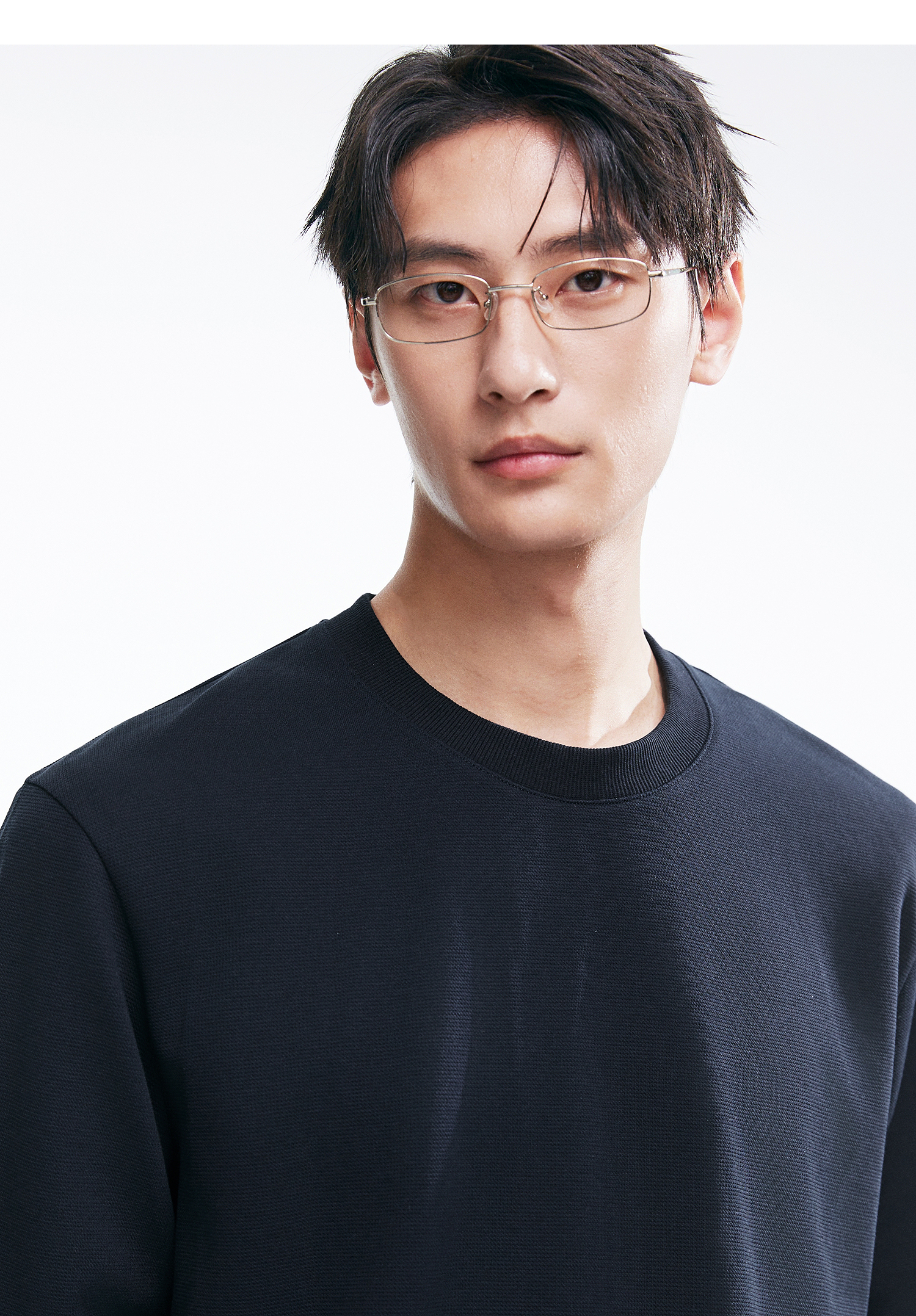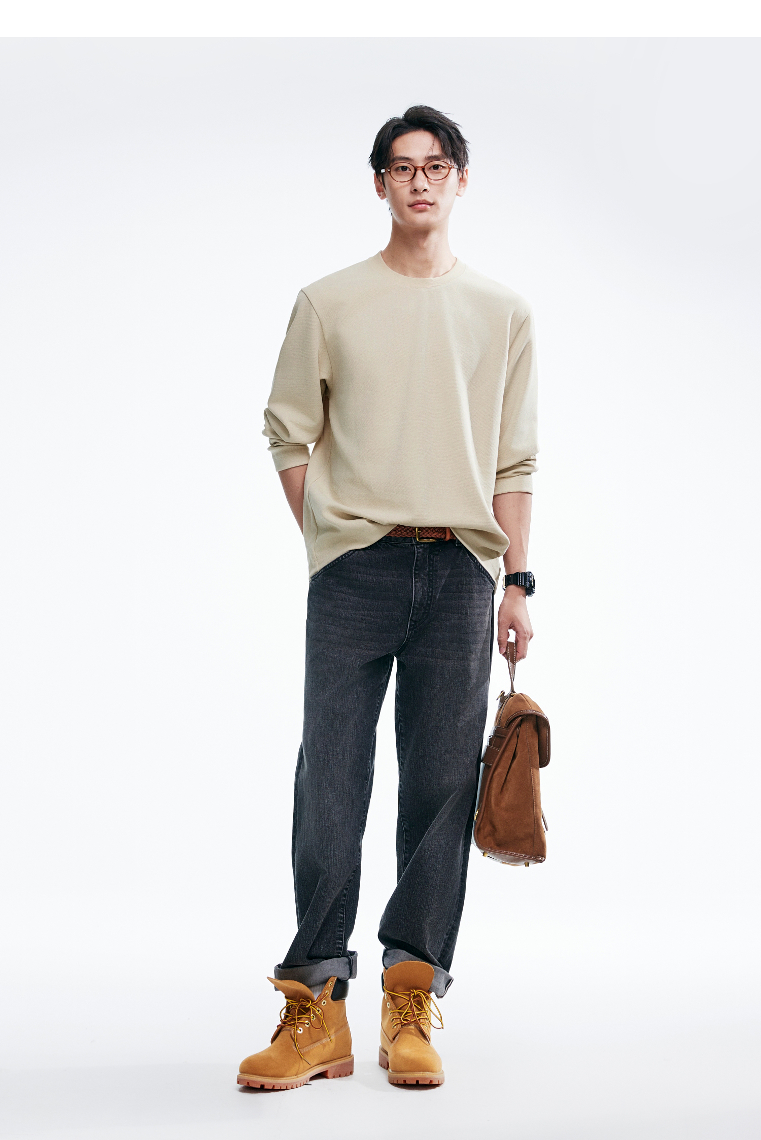 棉仓366801004-微宽松华夫格肌理长袖T恤男 秋季重磅男士打底衫体恤可外穿