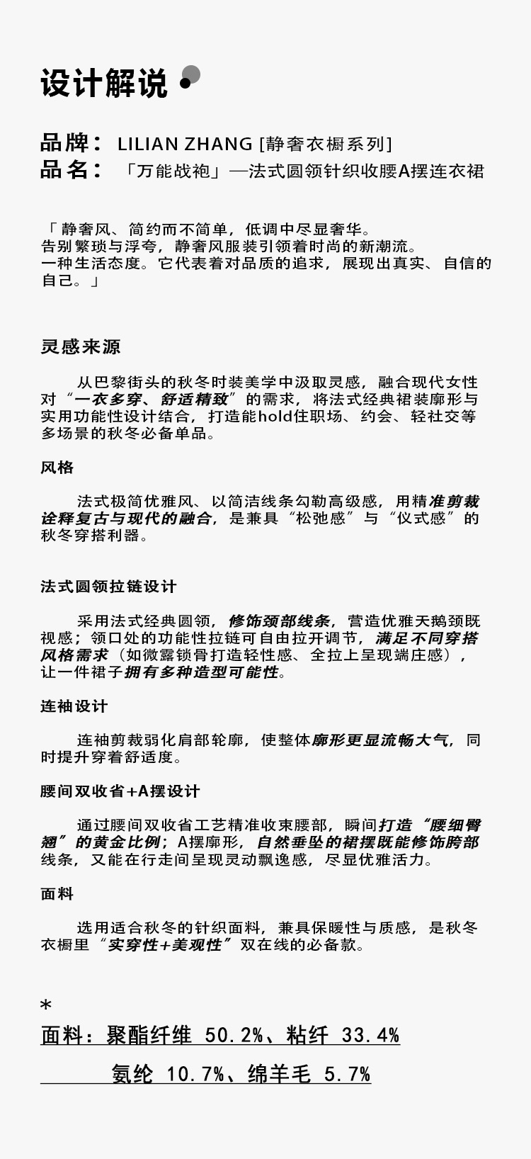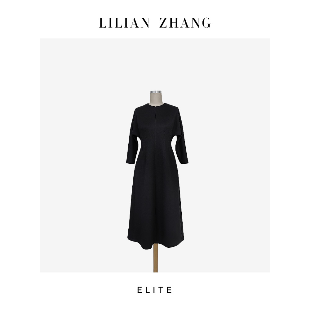 静奢风—万能战袍—复古奢雅—圆领拉链针织收腰A摆连衣裙 2501103