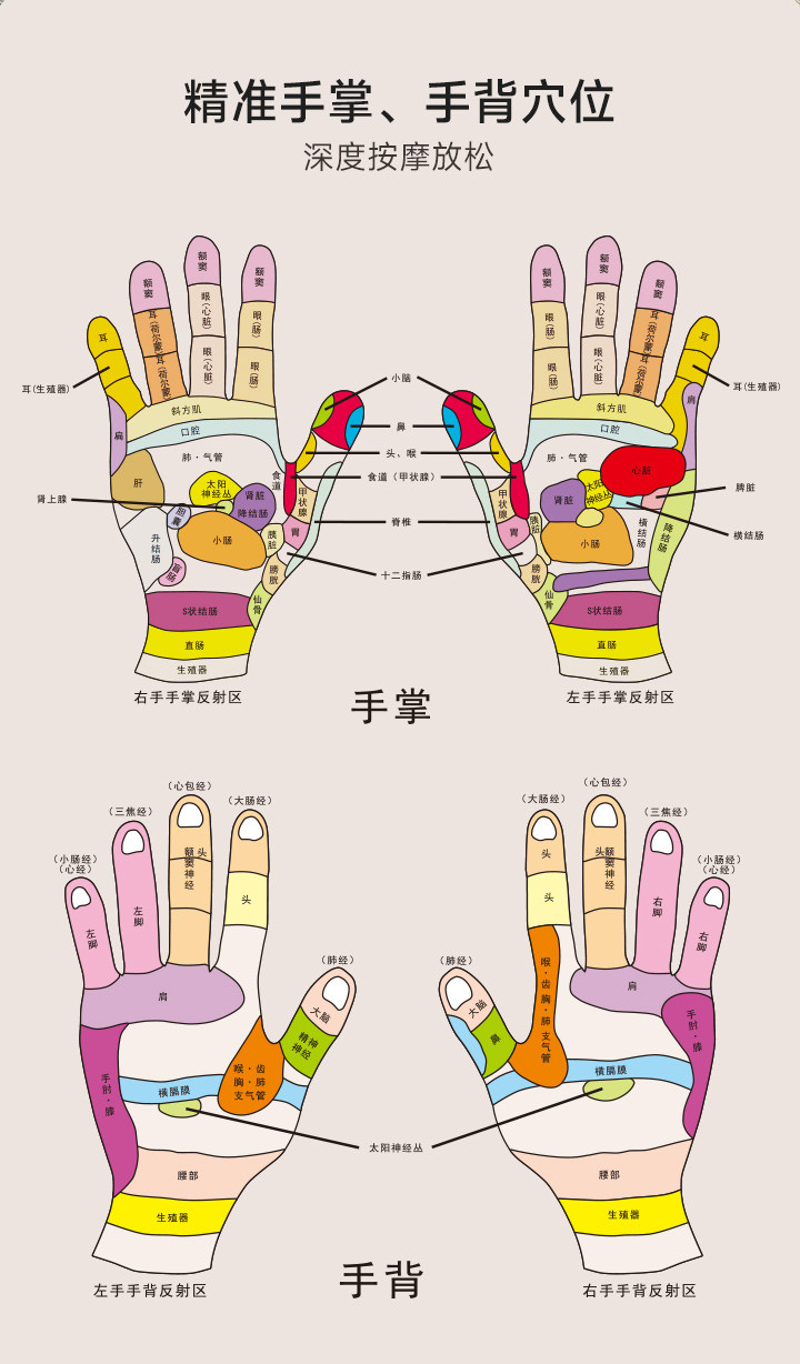 要知道,手部跟双脚一样,有超多穴位,分管着不同身体部位的穴位。