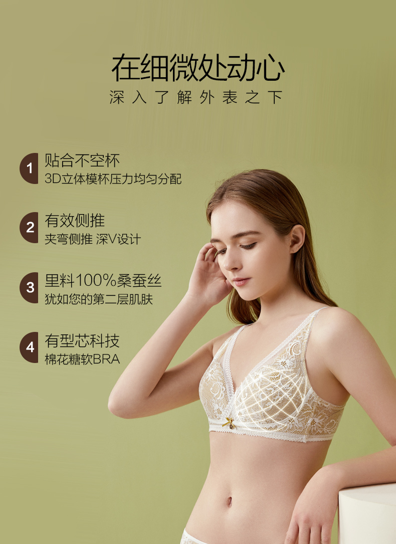 金三塔新品 真丝无钢圈内衣女 性感聚拢透气文胸 NZFAC302