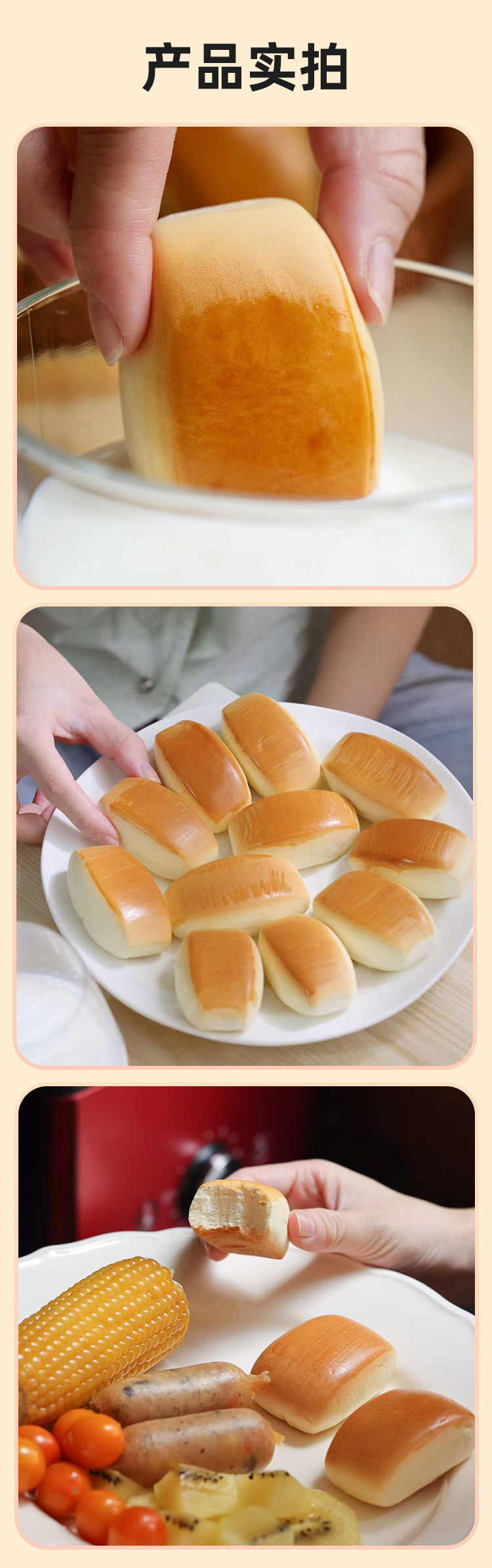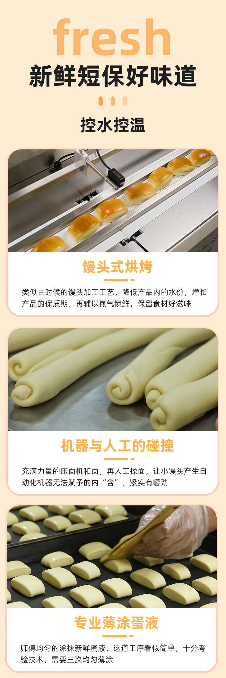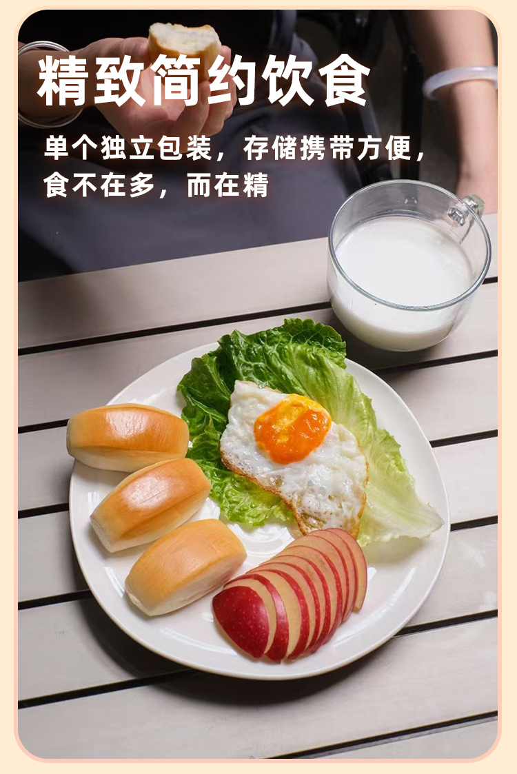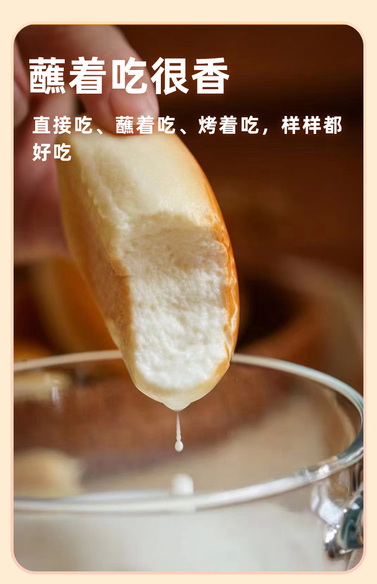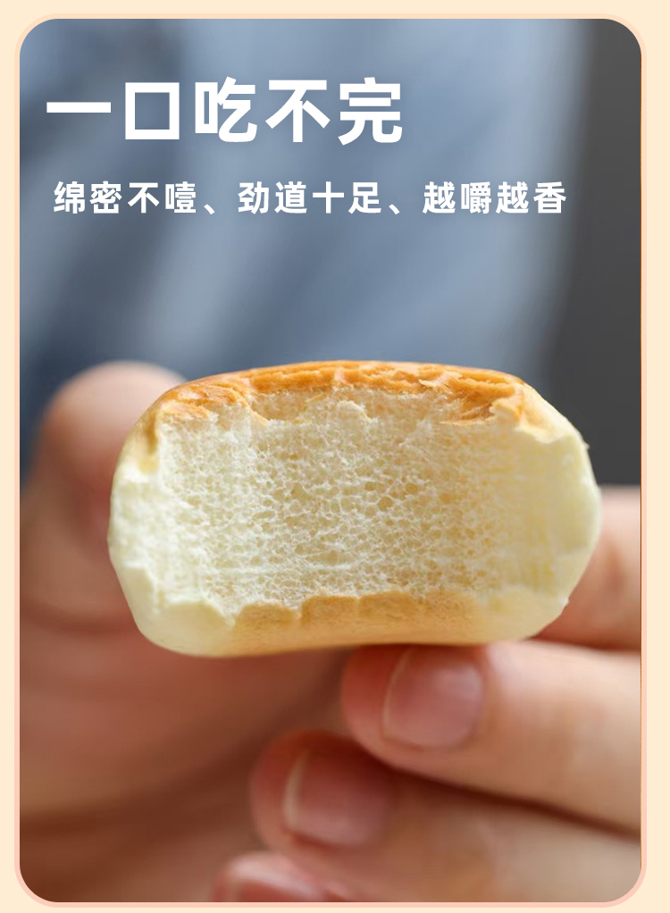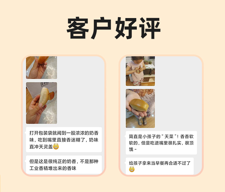 鲜奶小馒头 · 鲜奶和面 · 不添加一滴水 · 口感扎实 · 香醇劲道 · 宝宝安心 · 妈妈放心 · 0香精 0色素 0防腐剂 0反式脂肪酸(400g约28个)