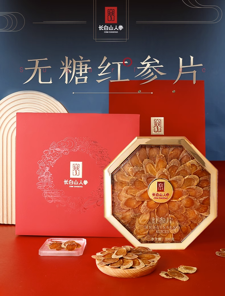 【长白山人参】红参片100g八角盒排片2.0礼盒