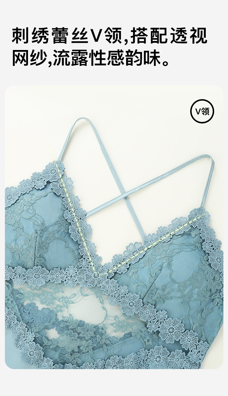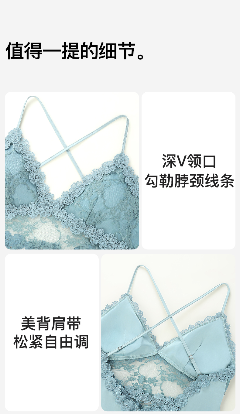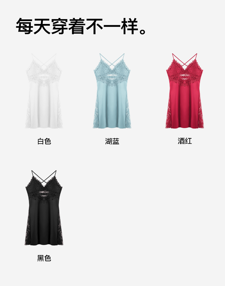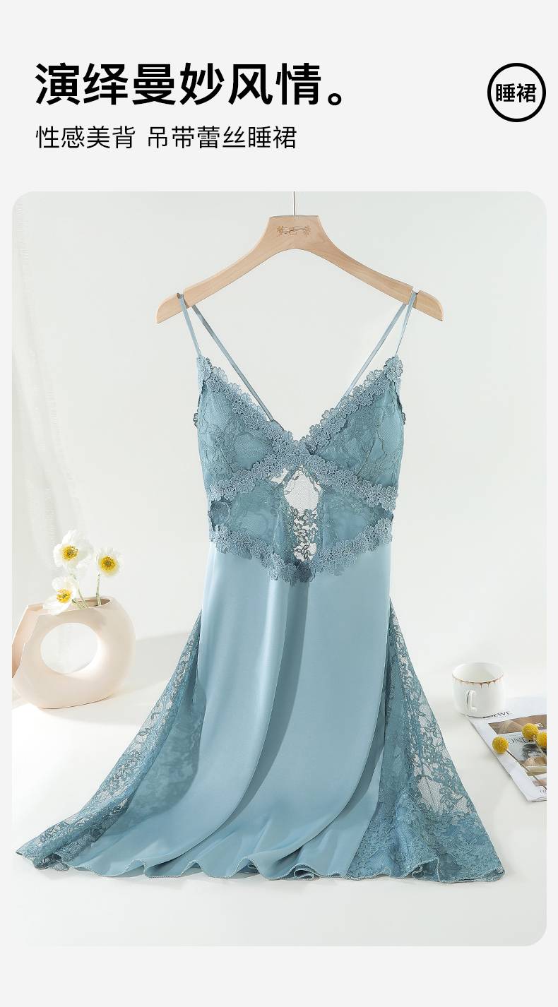 梦芭蒂刺绣含胸垫一体睡衣蕾丝性感V领吊带短裙性感镂空美背睡裙