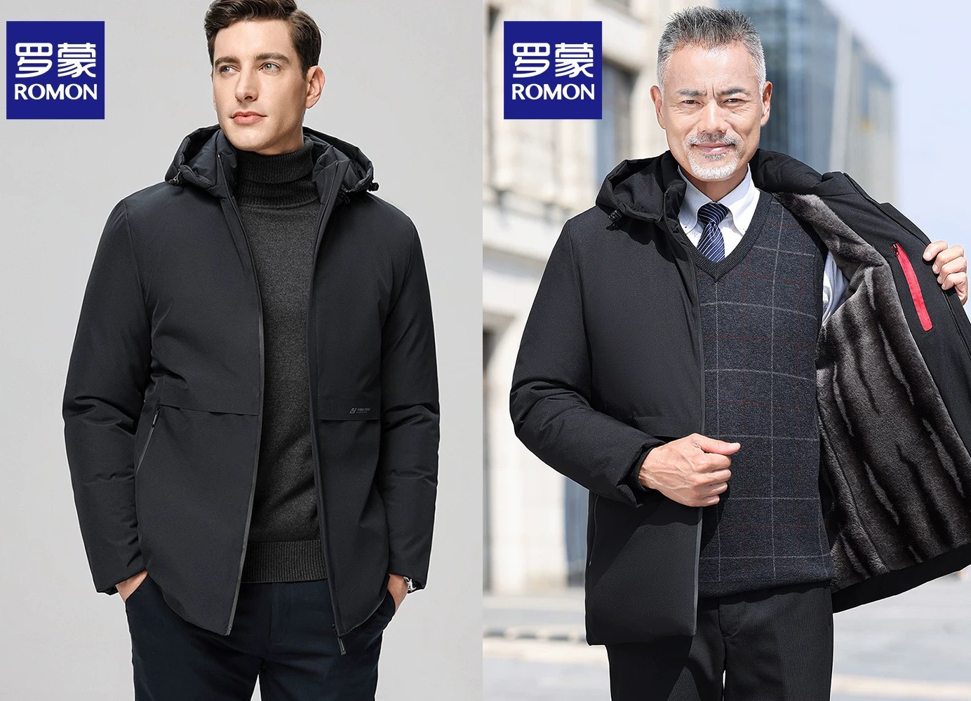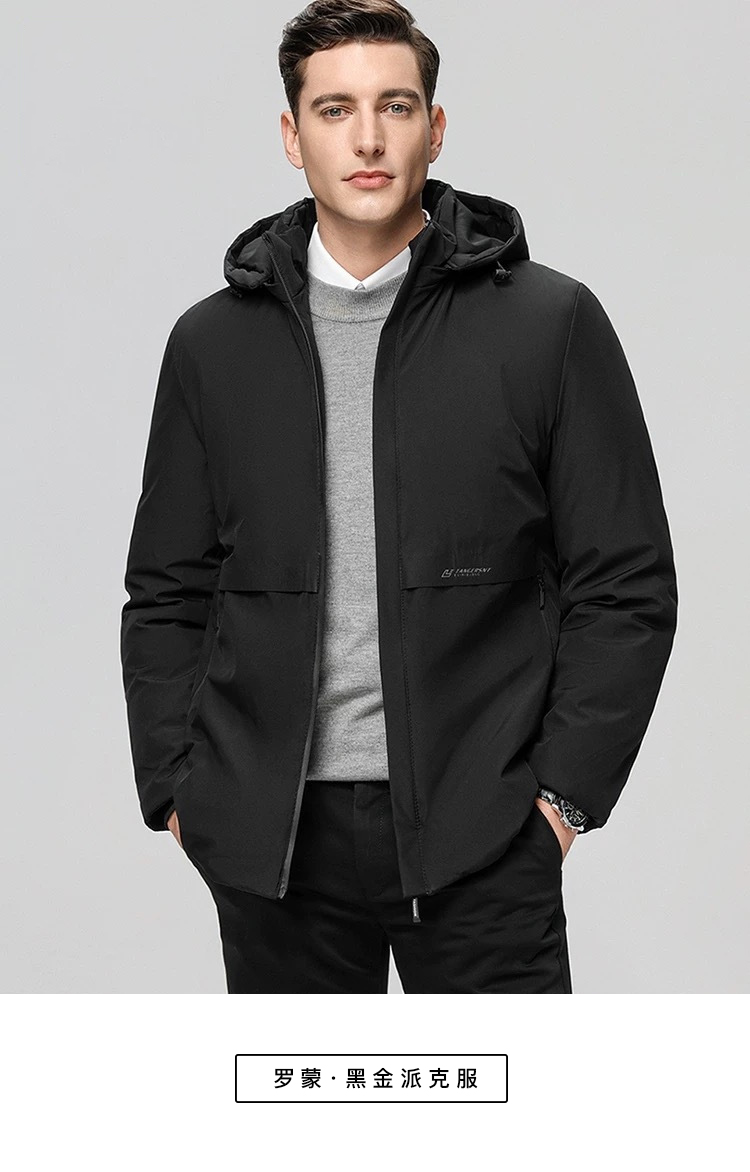 尤其是罗蒙黑金派克服,无毛领休闲直筒版型,比传统皮草派克服更简约大方。
