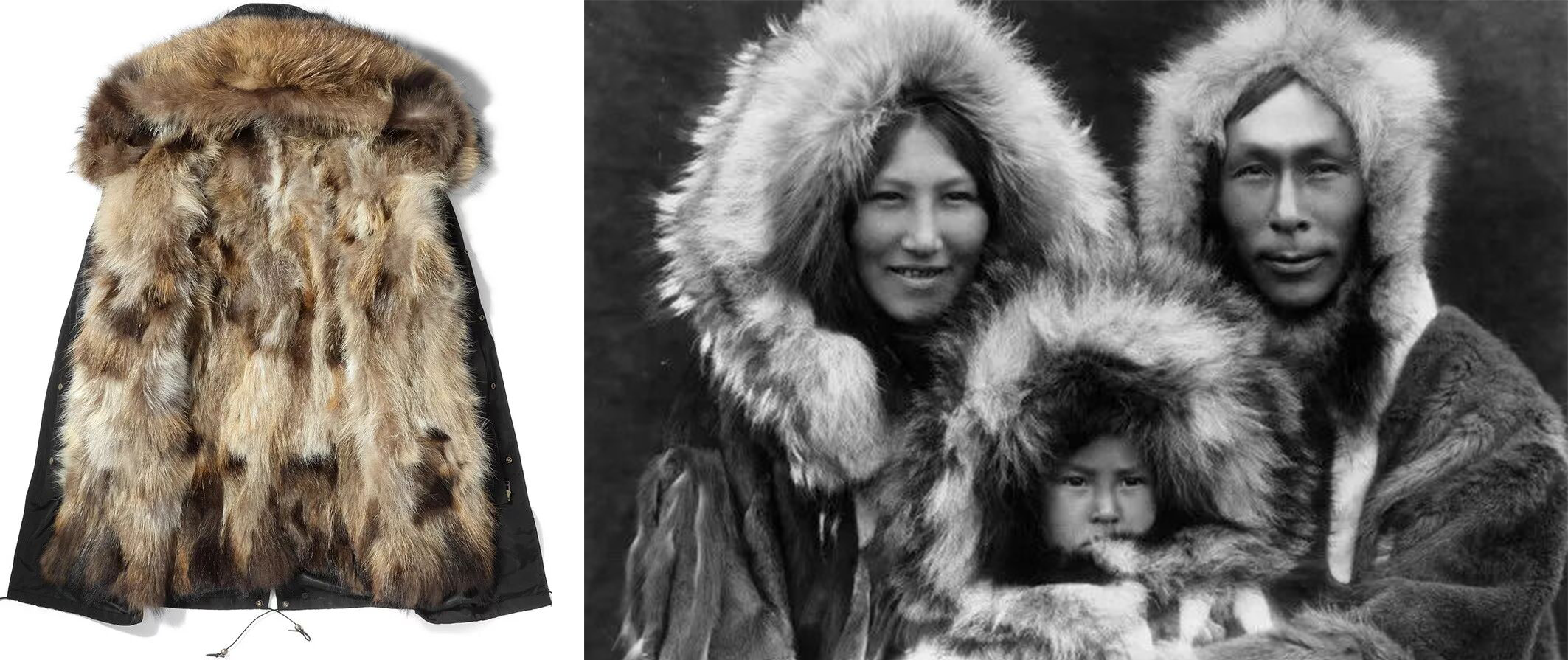 这种衣服不仅能防风雪,还极其保暖。是爱斯基摩人(北极地区的土著民族)为了外出打猎时抵御极端低温和风雪,而发明的一种以动物皮毛制成的连帽皮袄。