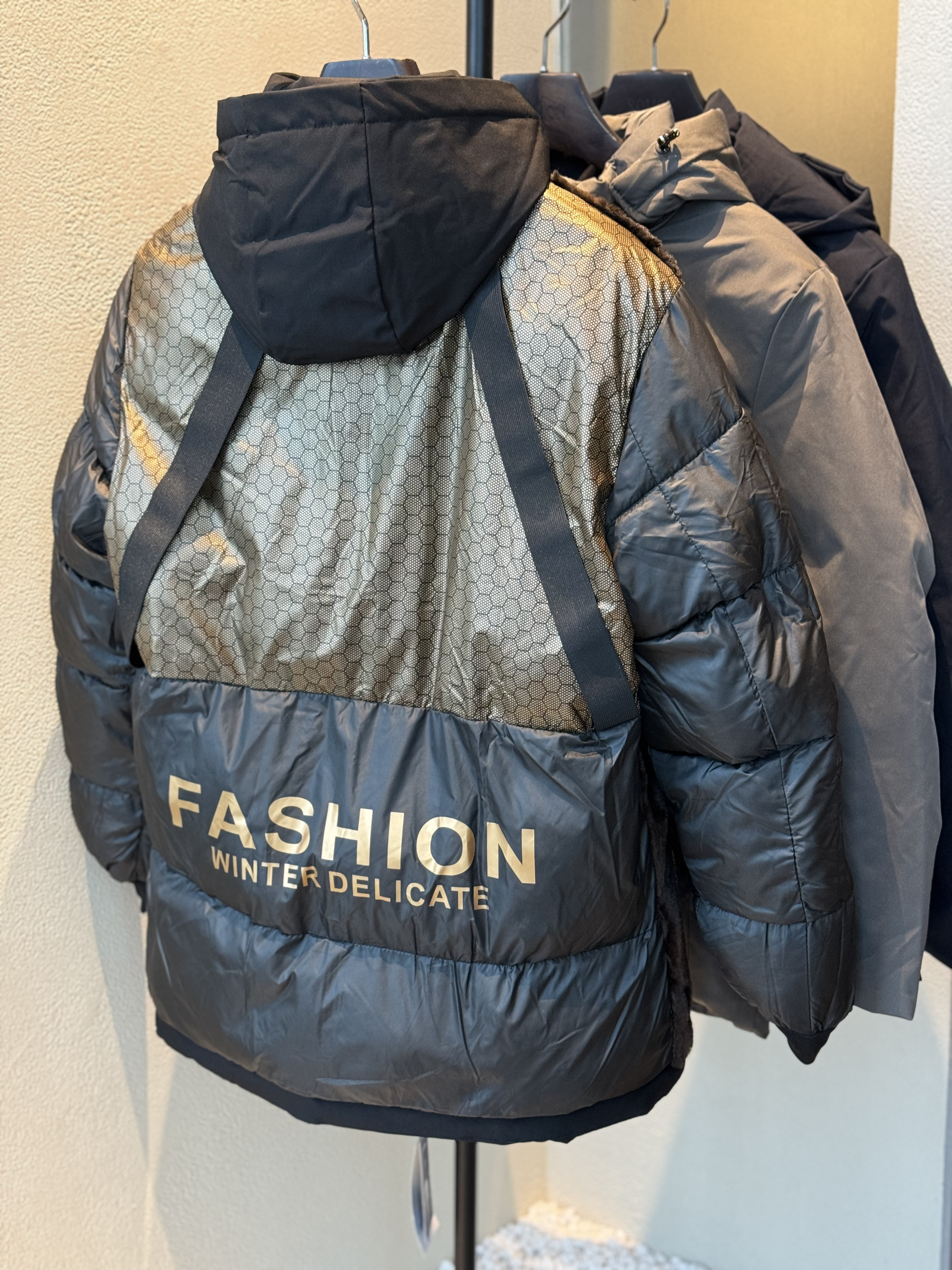 这款黑金派克服,是银泰、万达 、王府井等各大商场同步在售款,也是罗蒙总部大厦展厅、各实体店的C位款。