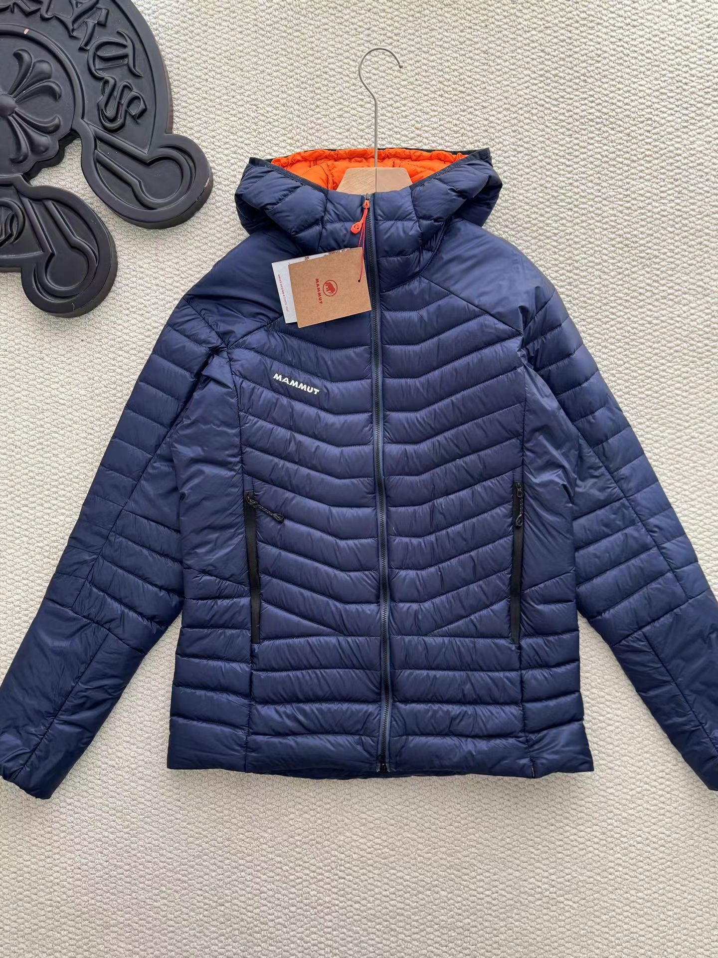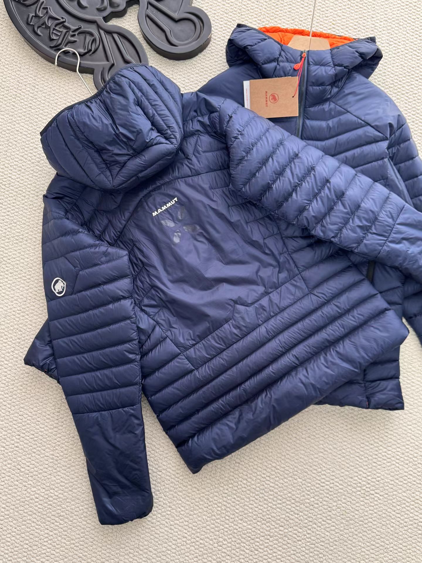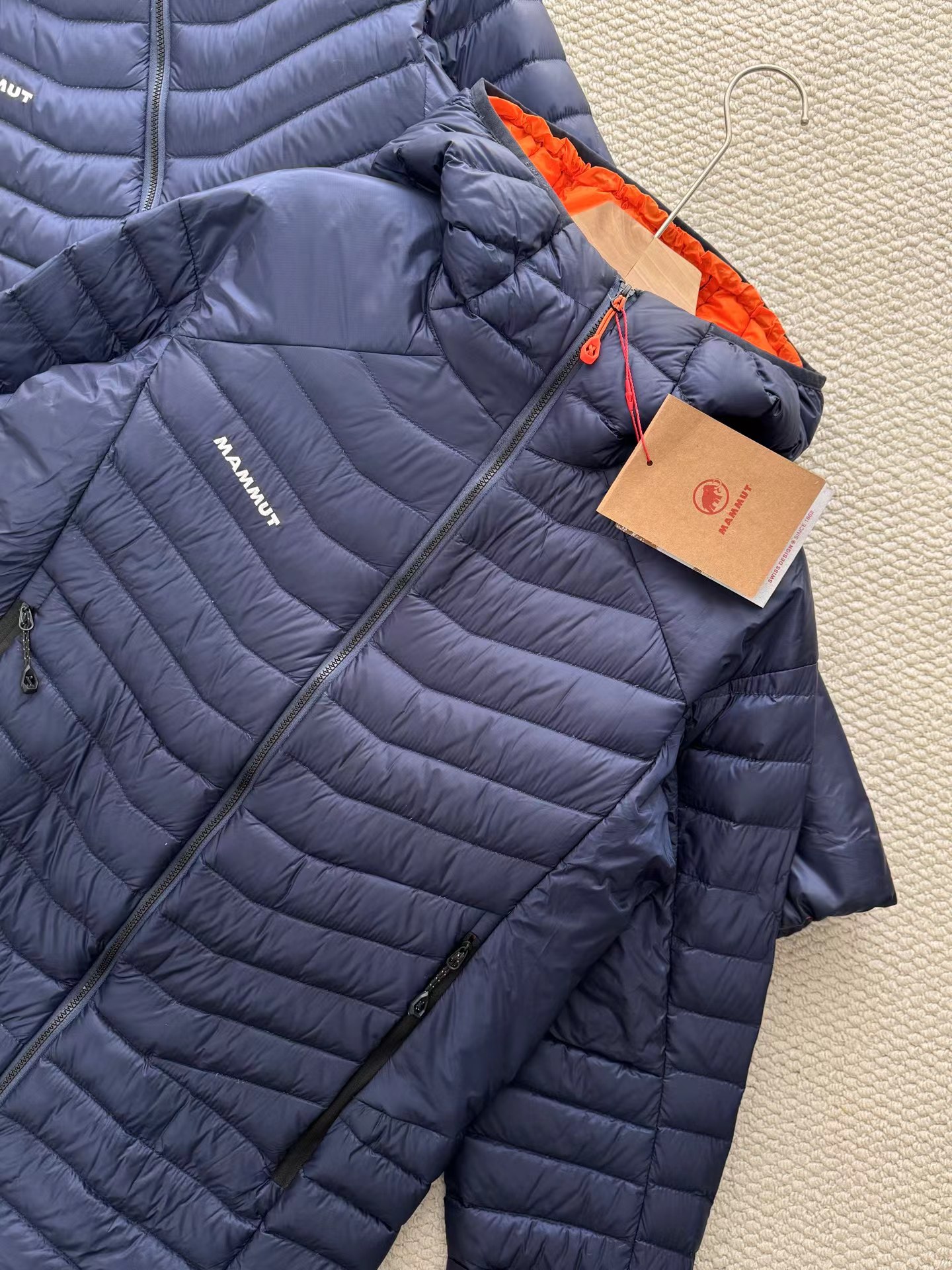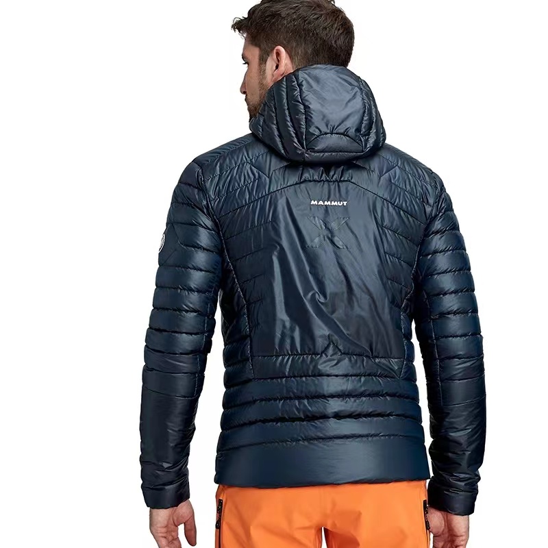 男士Pertex轻量保暖防泼水750+蓬羽绒服 采用标志性的排骨纹绗缝工艺,让羽绒分布更均匀且有效避免跑绒;连帽设计贴合头部轮廓,帽檐可轻微调节,应对户外多变风况;领口内侧的橙色撞色,为藏青主色增添视觉亮点,左胸的品牌标识与隐形拉链口袋设计,兼顾品牌辨识度与整体版型的简洁性;衣身的立体剪裁贴合人体工学,肩部与袖管的衔接处无多余缝线,活动时无束缚感。主打轻量化羽绒填充,在保证保暖性的同时大幅降低衣身重量,作为中间层搭配冲锋衣无臃肿感,单穿也能应对秋冬日常及轻户外场景;面料具备一定的防泼水性与抗风性,徒步、露营时可抵御小雨和冷风;拉链口袋能安全收纳手机、钥匙等小物件,连帽的防风设计也进一步提升了户外实用性。