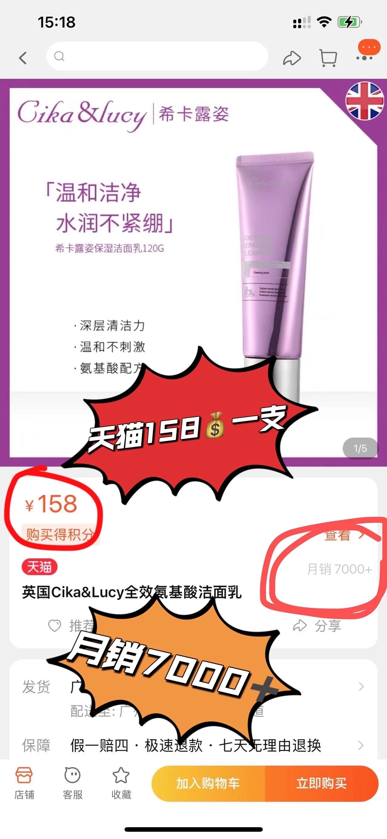 1支/2支~天猫在售158一支!英国院线医美指定产品【英国Cika&Lucy多重氨基酸洁面乳120g】英国法国🇫🇷高端SPA专属御用修复品牌!天然温和不刺激,孕妇儿童可用超级放心🙏