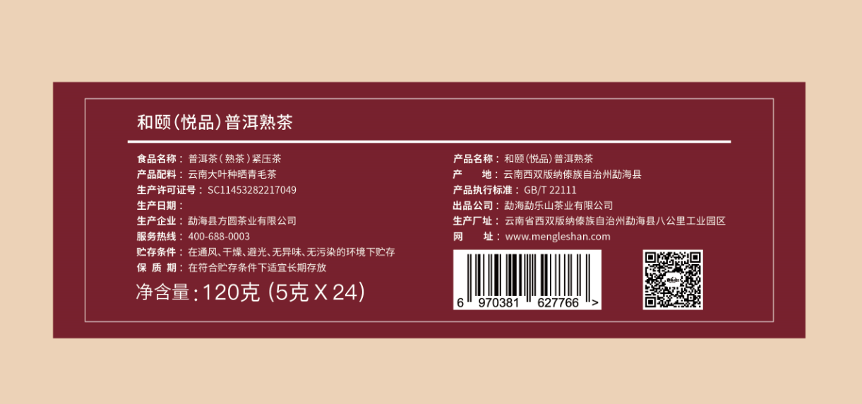 勐乐山2020和颐普洱茶(悦品)熟砖铁盒装120g