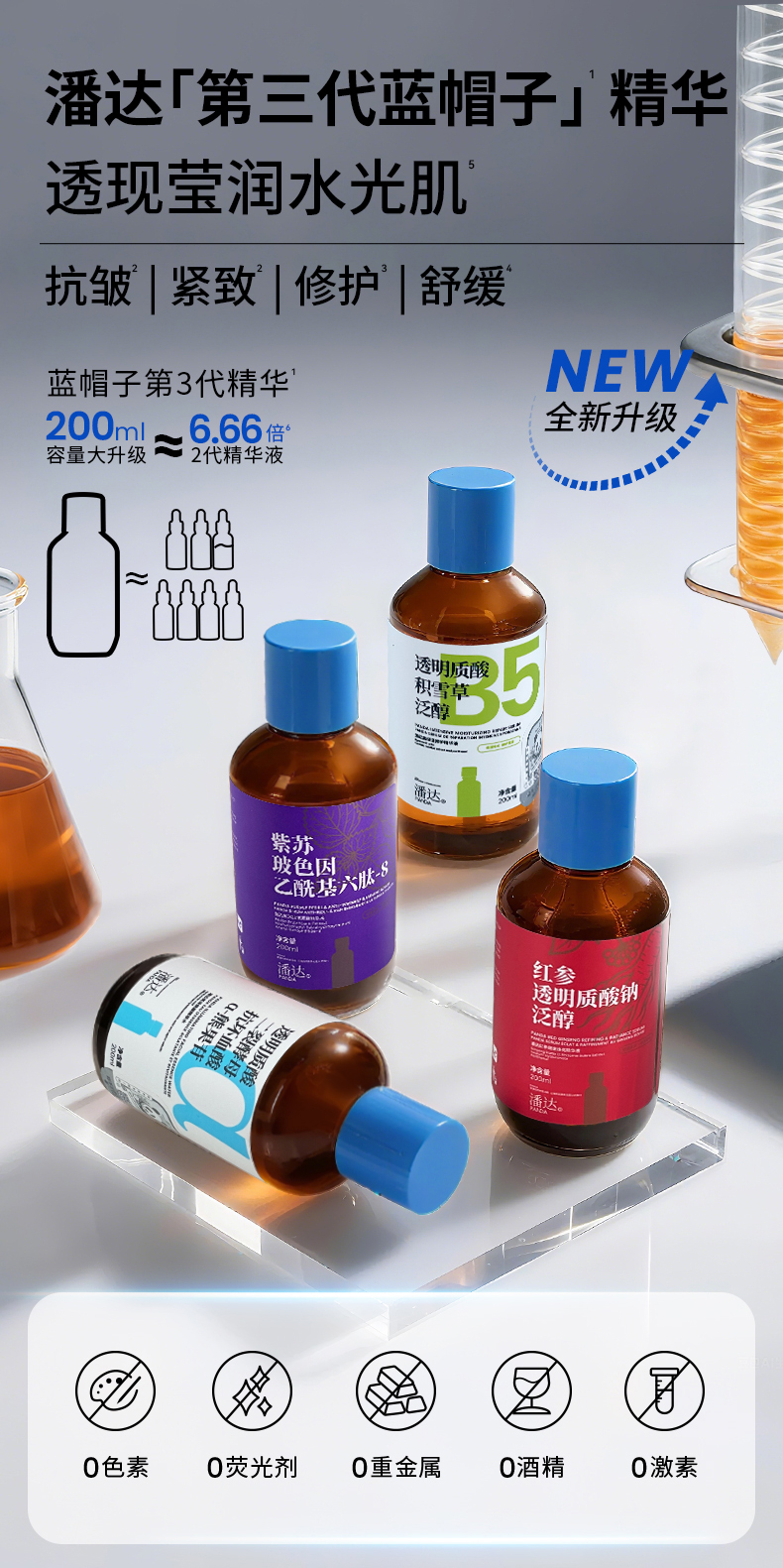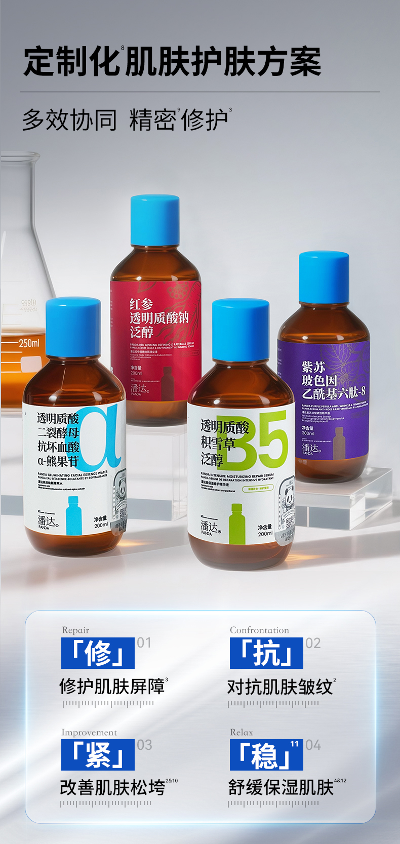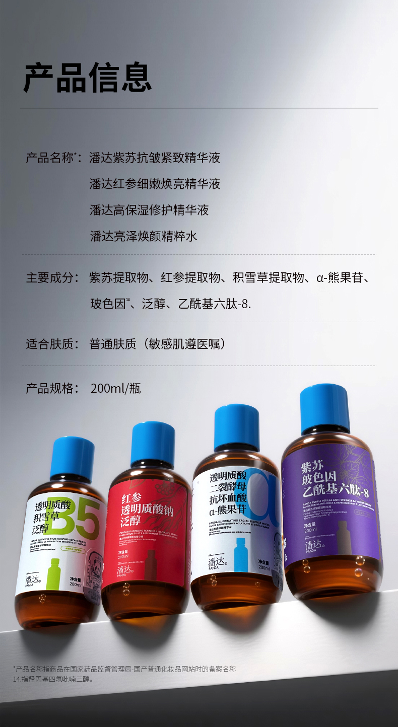 【39.9任选2件】潘达紫苏抗皱3.0精华液二裂酵母红参积雪草透明质酸舒缓修护屏障