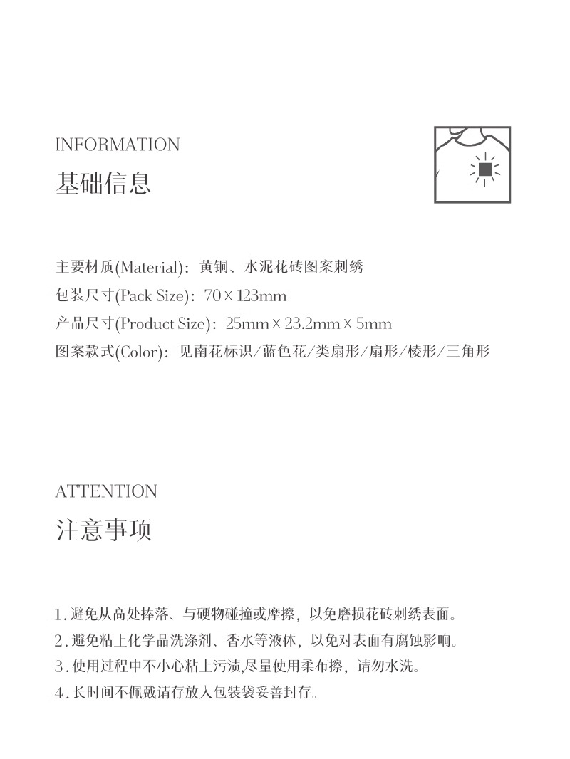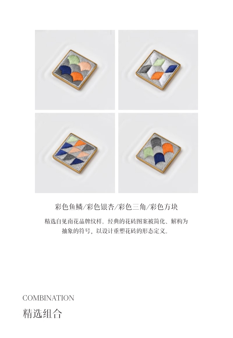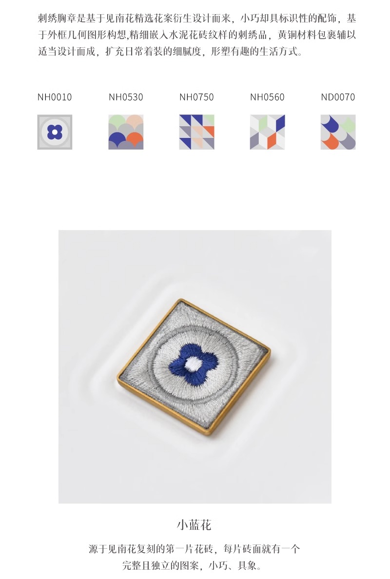 见南花 | 刺绣黄铜花砖胸章 齐针丝绣创意配饰徽章礼物定制logo
