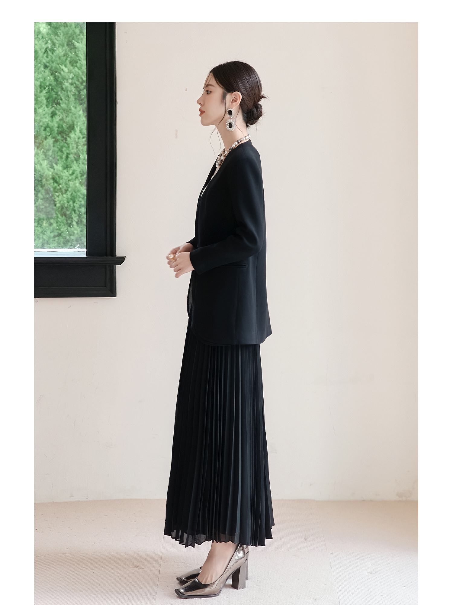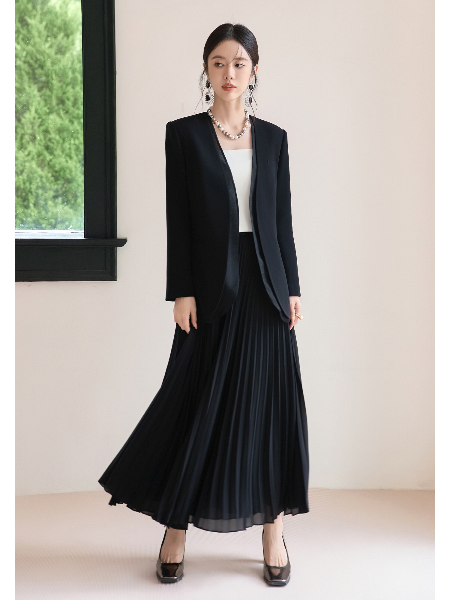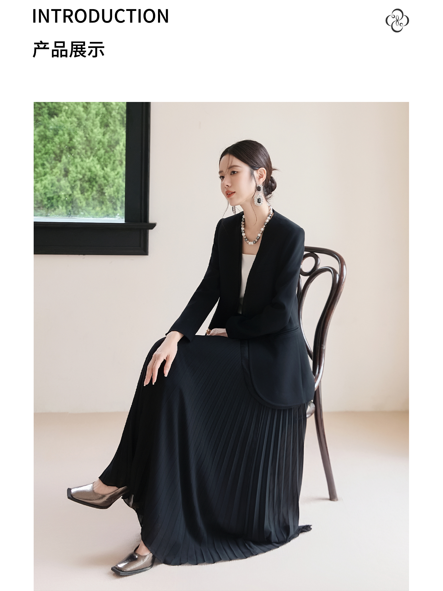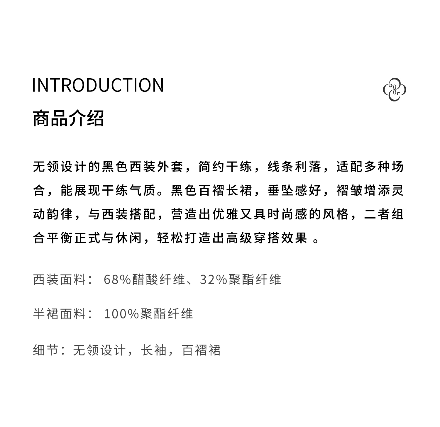 FUYAO扶摇 轻奢小香风西装套装女秋冬黑色高级感醋酸西服两件套