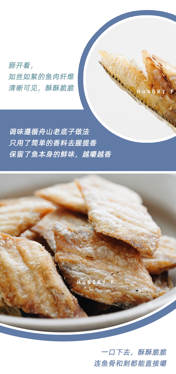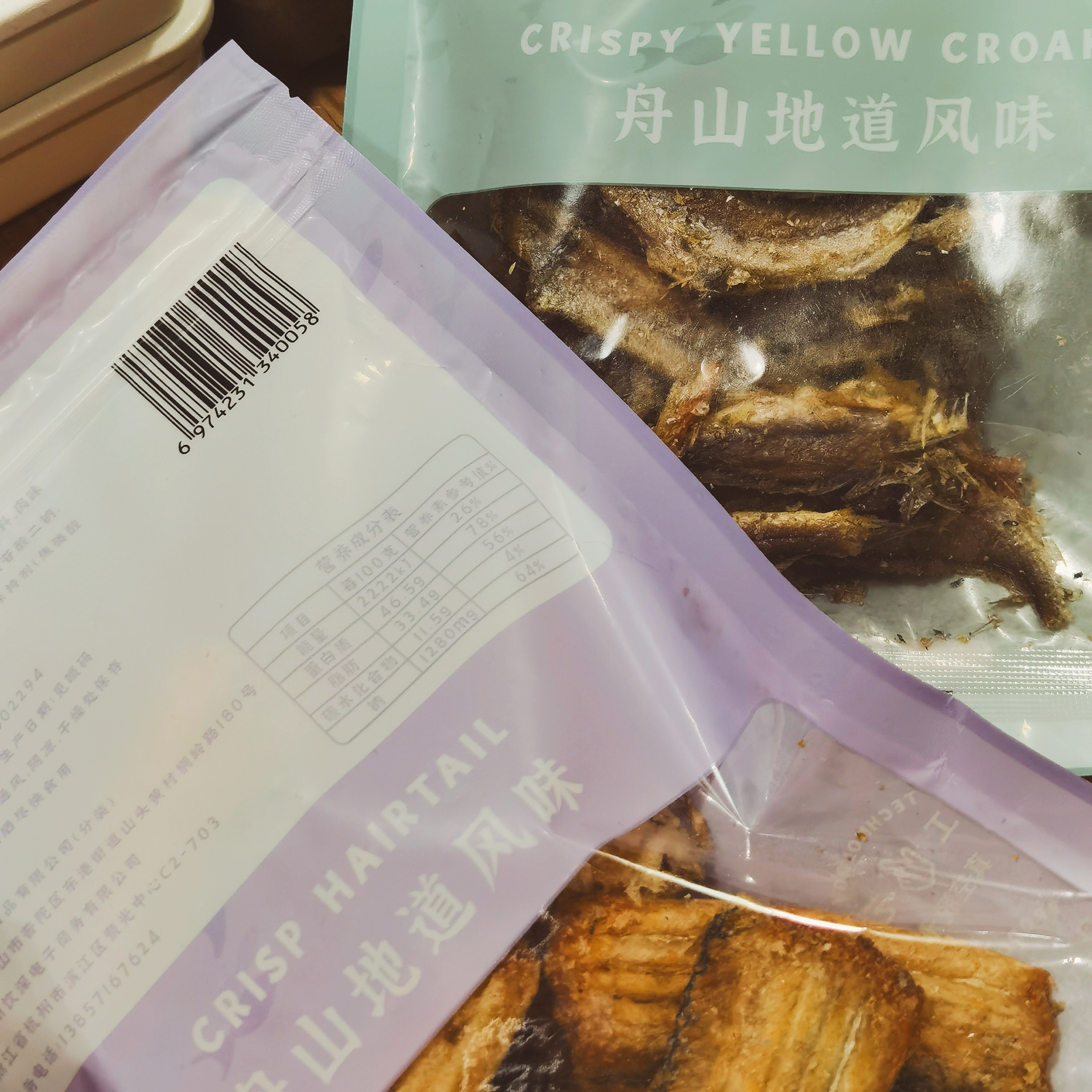 两款鱼酥都是独立袋装,每包80g,算成新鲜的,要用掉将近2斤鱼!舟山小海鲜在全国都很出名,而用它做成的鱼酥,蛋白质含量也很高,一下吃完一整包也没负担!喜欢吃海鲜产品以及鱼酥的大朋友小朋友,请吃吃!