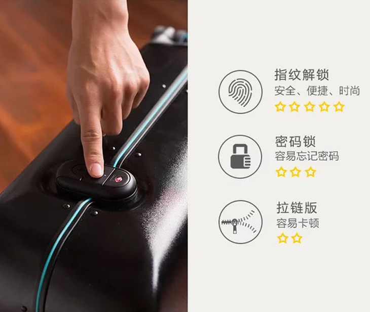 【文怡之选】90分智能解锁旅行箱 智能指纹解锁20寸行李箱 登机箱
