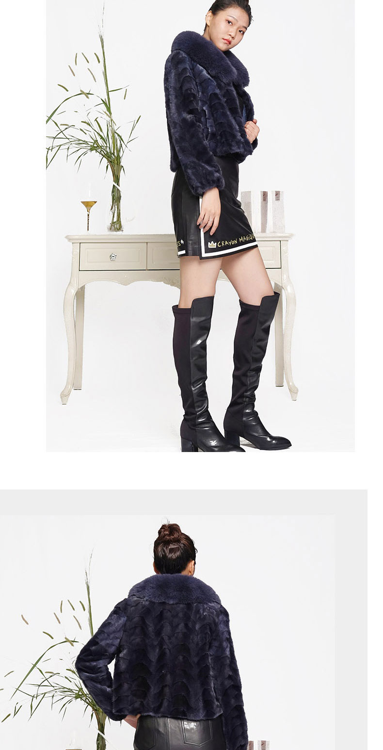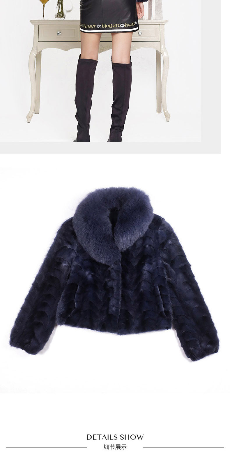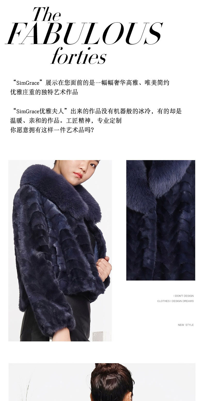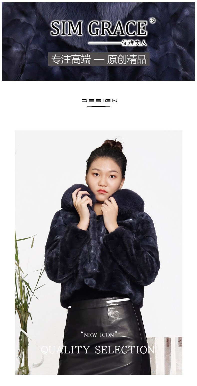 SIM GRACE 优雅夫人 2024年新款短装百搭100%水貂毛朋牙拼貂狐狸毛领女装皮草外套