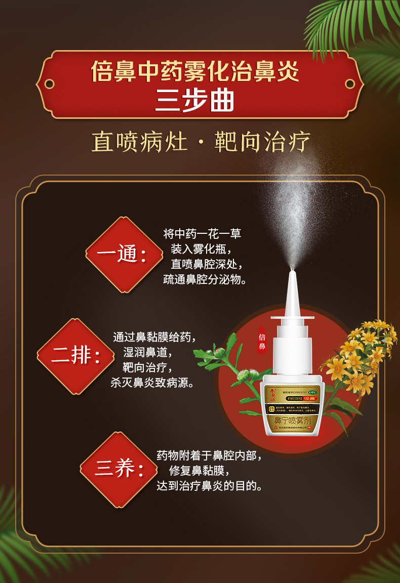 养无极倍鼻鼻宁喷雾剂10ml*3瓶/盒过敏性急性鼻炎中草药鼻塞流涕