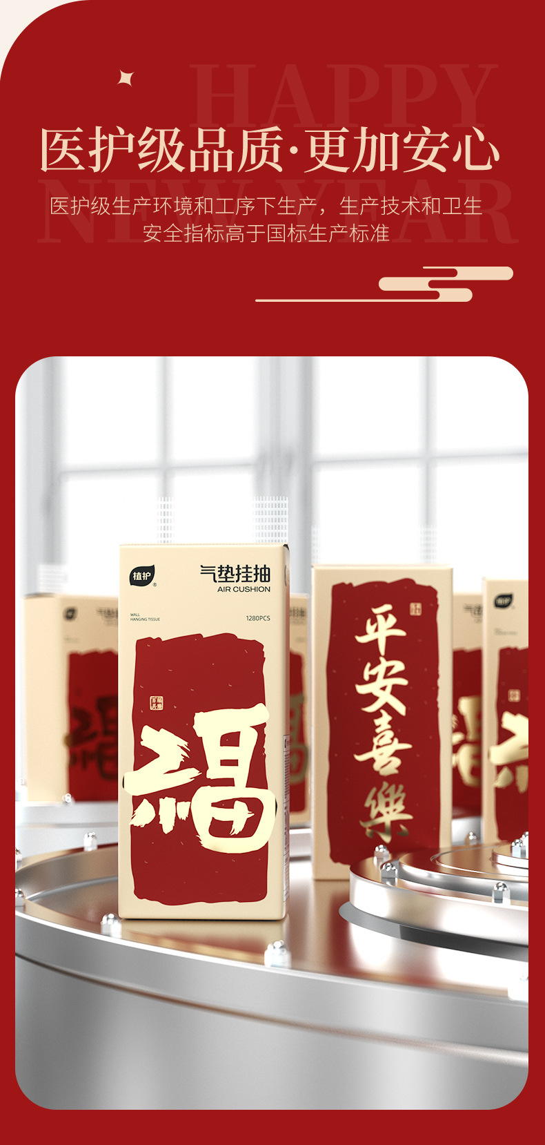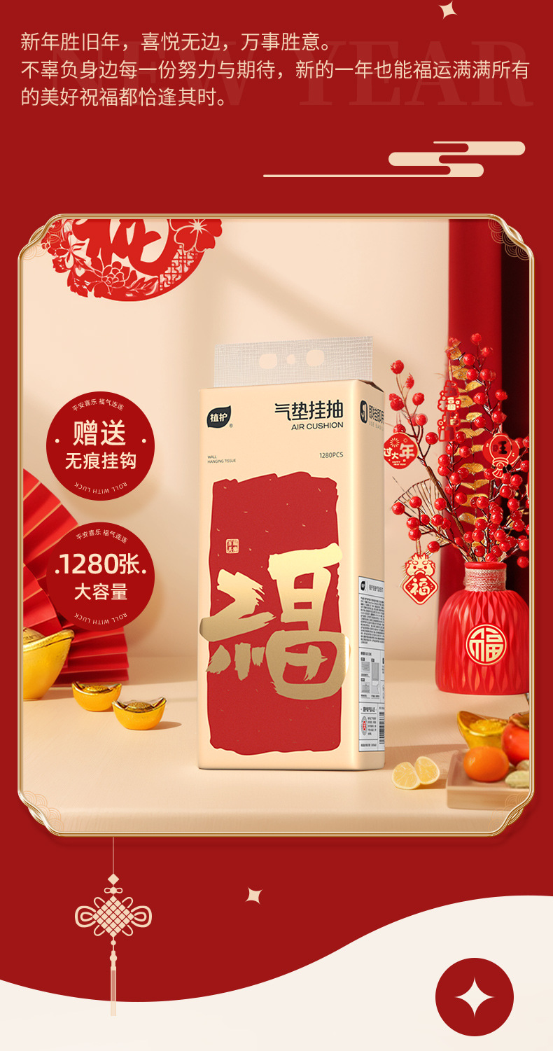 【福气临门!喜乐常在】植护礼品挂抽2提悬挂式抽纸巾平安喜乐提装活动送礼纸面巾量。ry