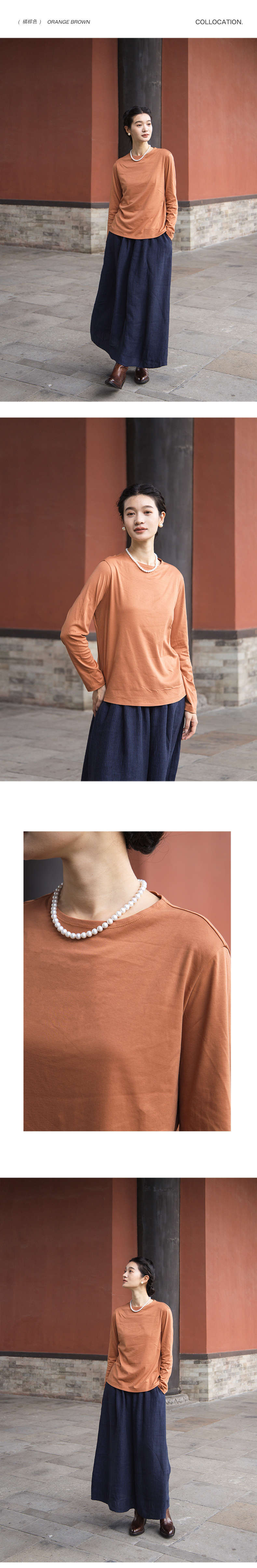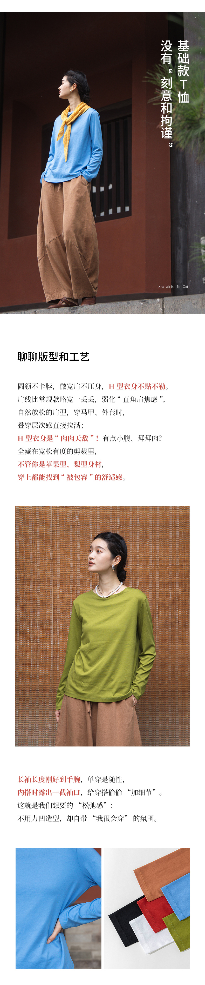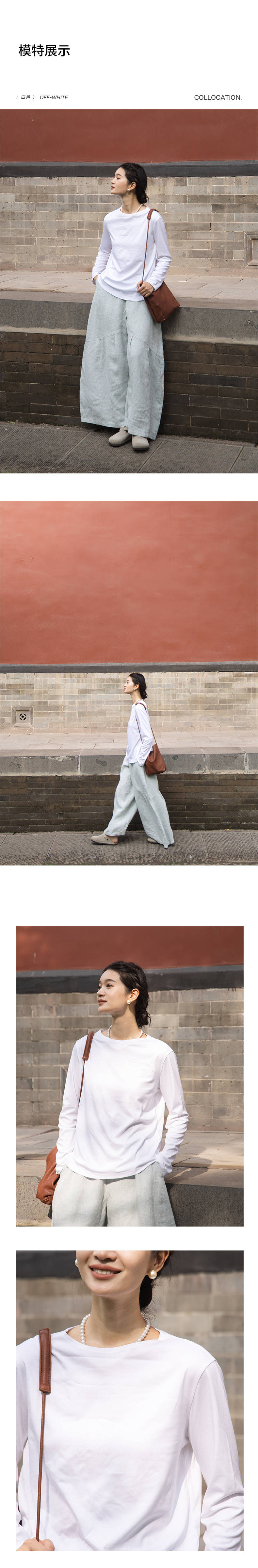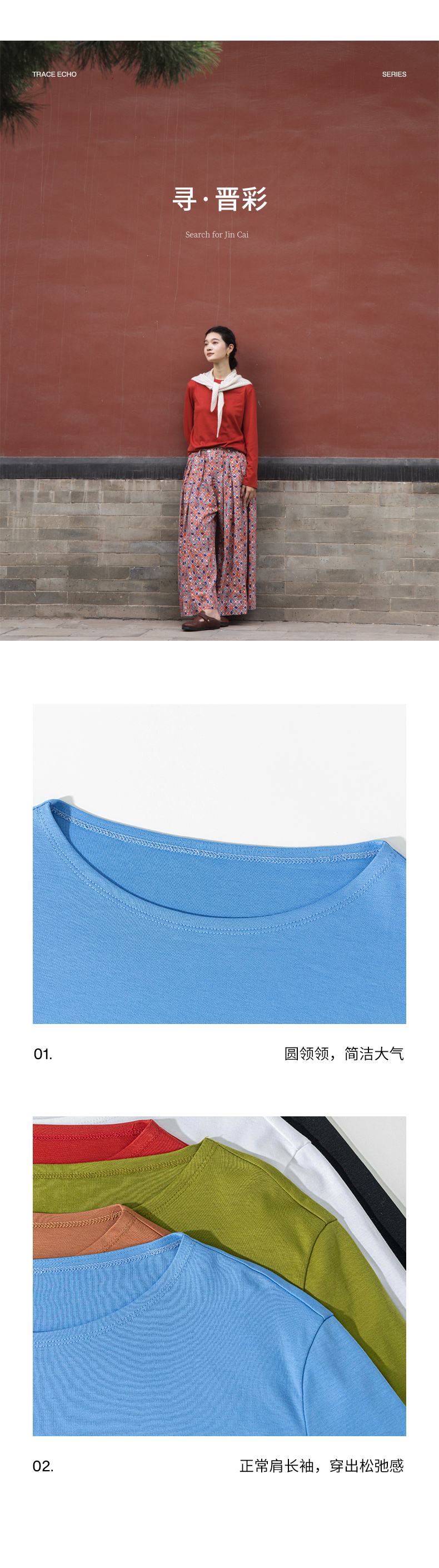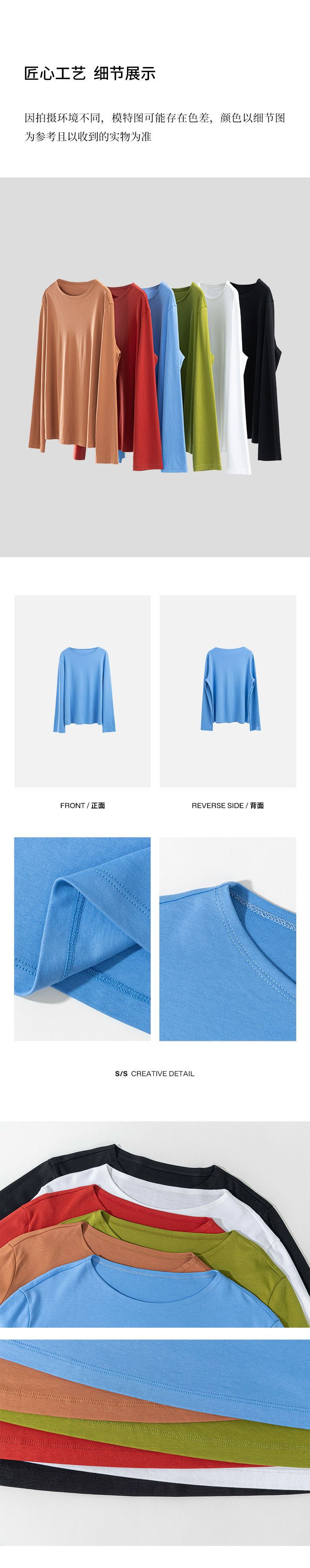 绽放591朵/超长长绒棉晶格工艺圆领正常肩长袖T恤女秋冬季打底衫