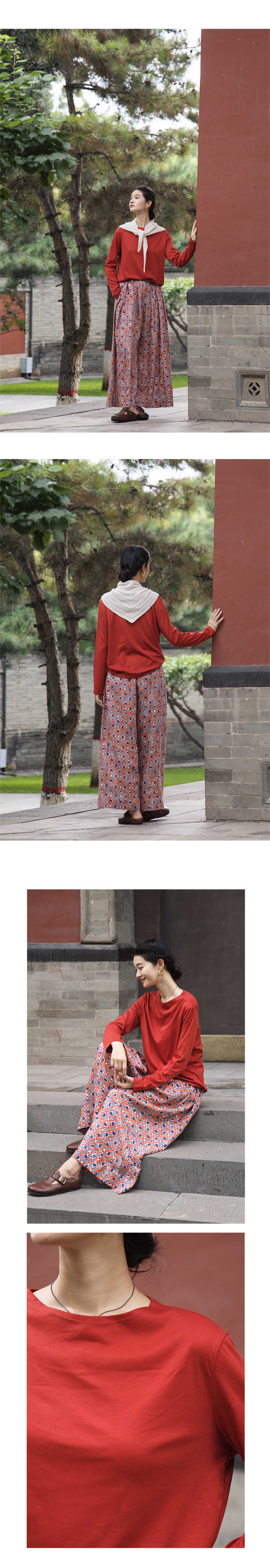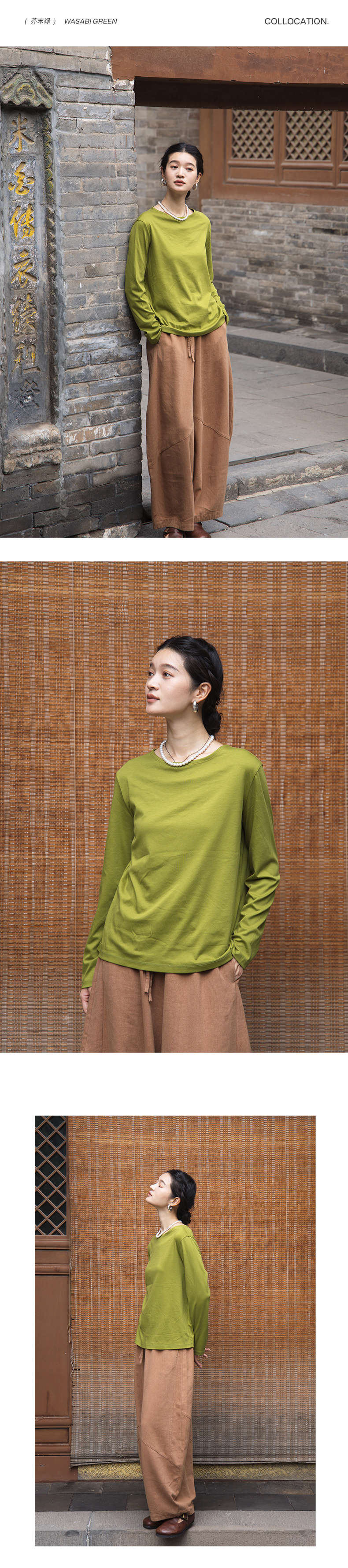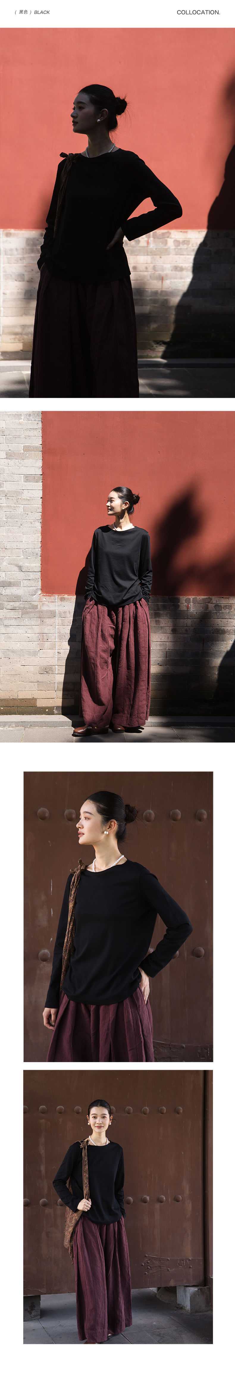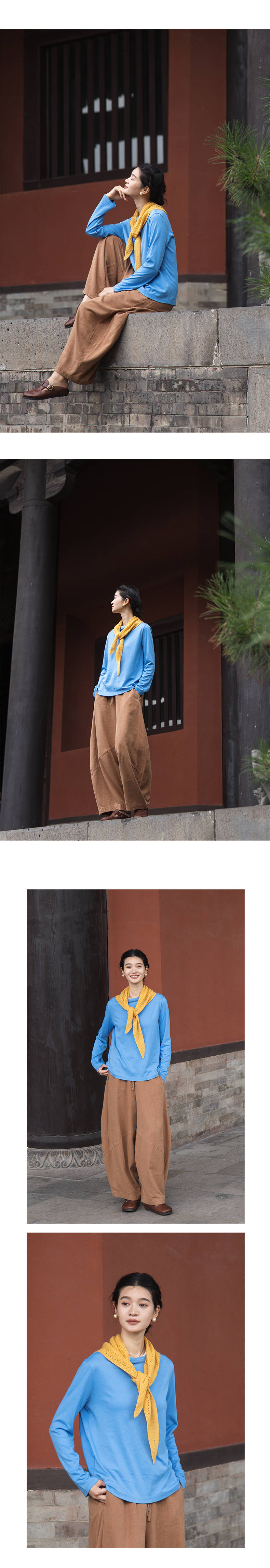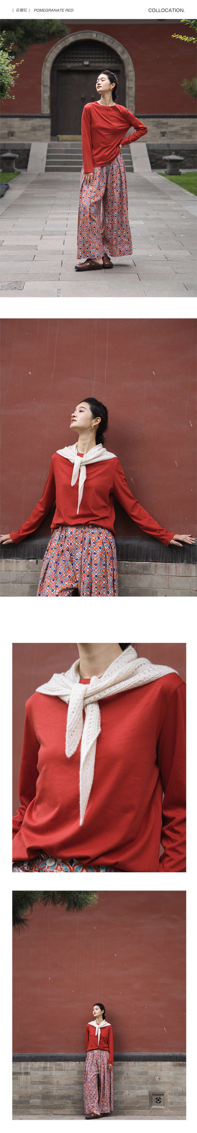 绽放591朵/超长长绒棉晶格工艺圆领正常肩长袖T恤女秋冬季打底衫