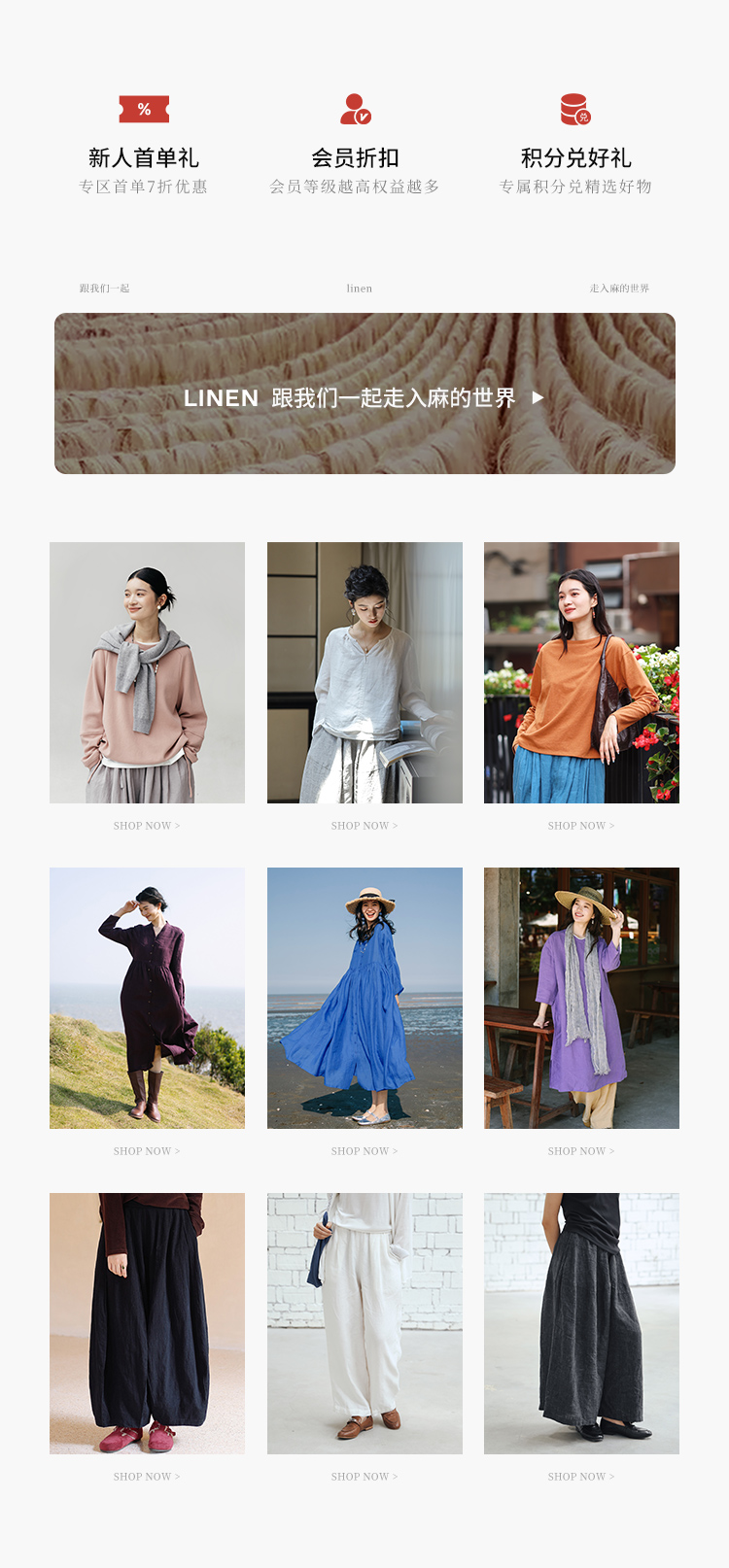以天然亚麻为载体,融合热烈色彩与自在剪裁为身在城市、心怀远方的女性提供兼具美学与舒适的旅行着装