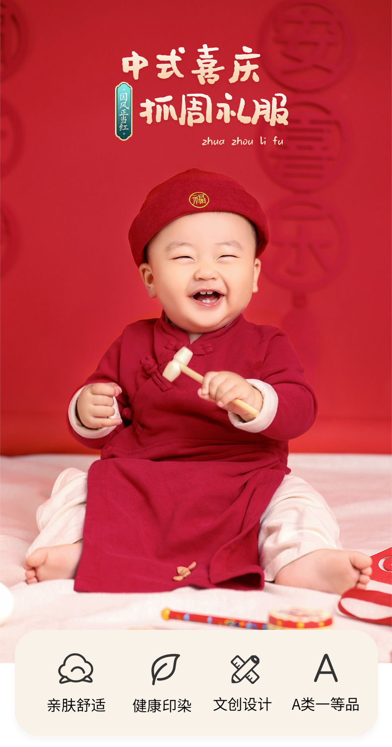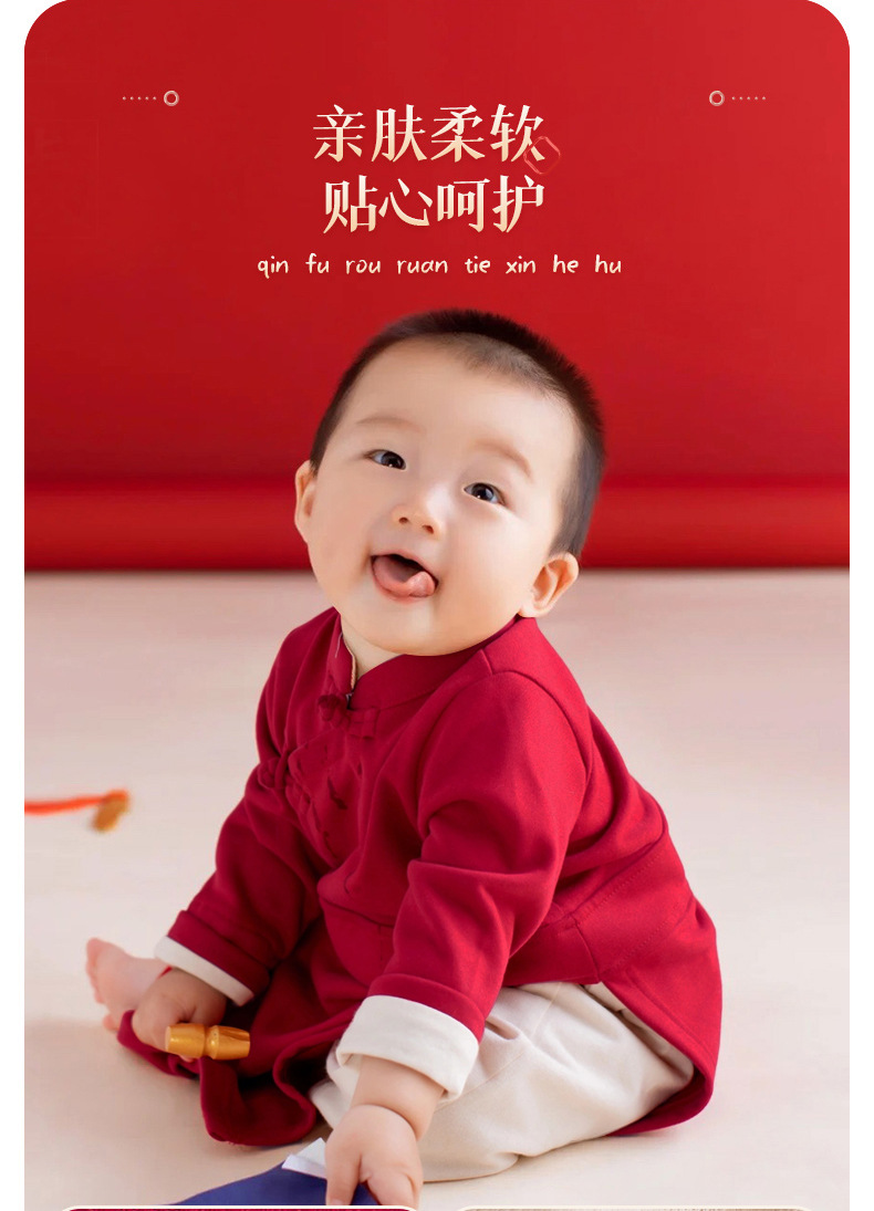 【中式喜庆抓周礼服】宝宝一周岁抓周礼服男女儿童满月百天宴衣服装中式中国风喜庆唐装