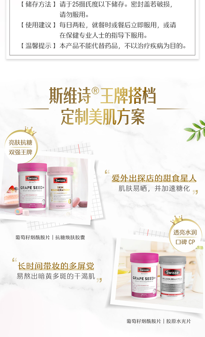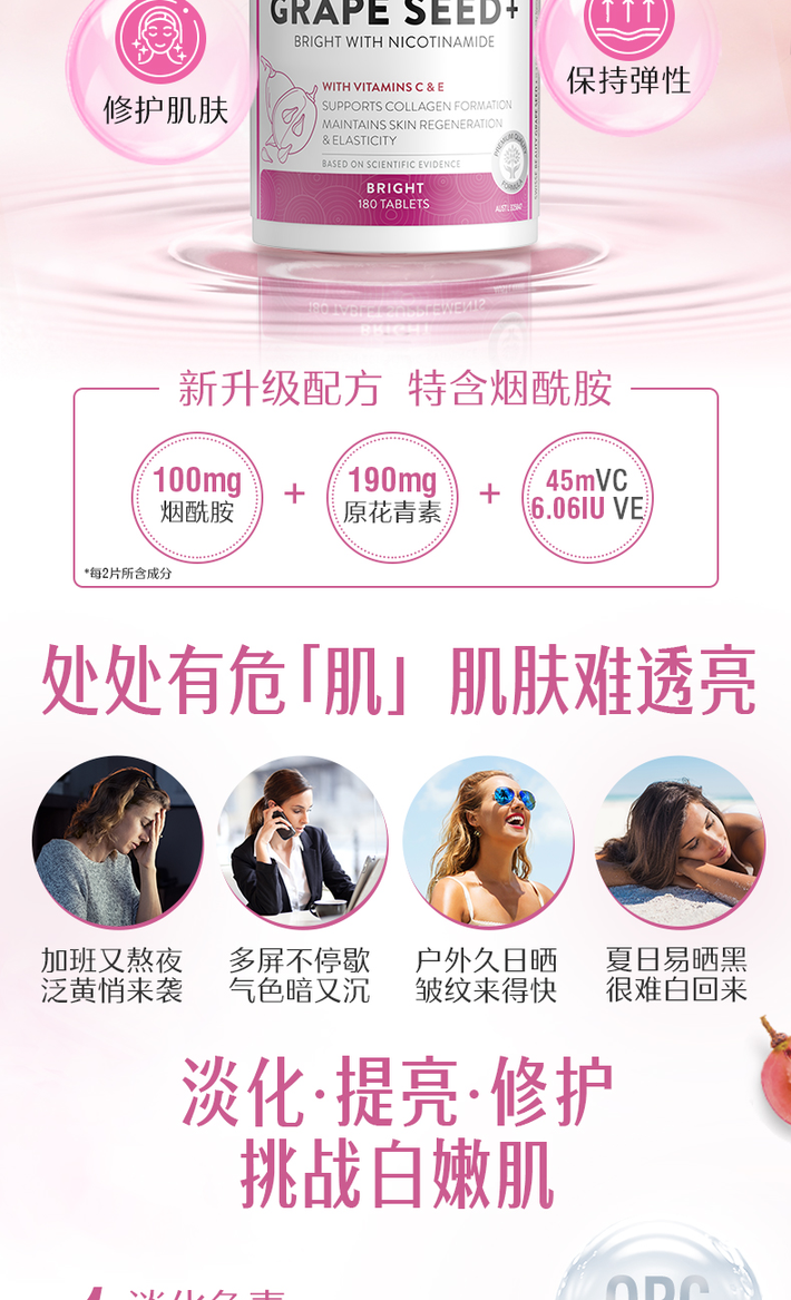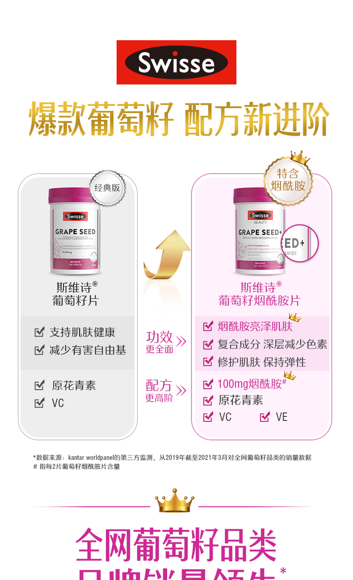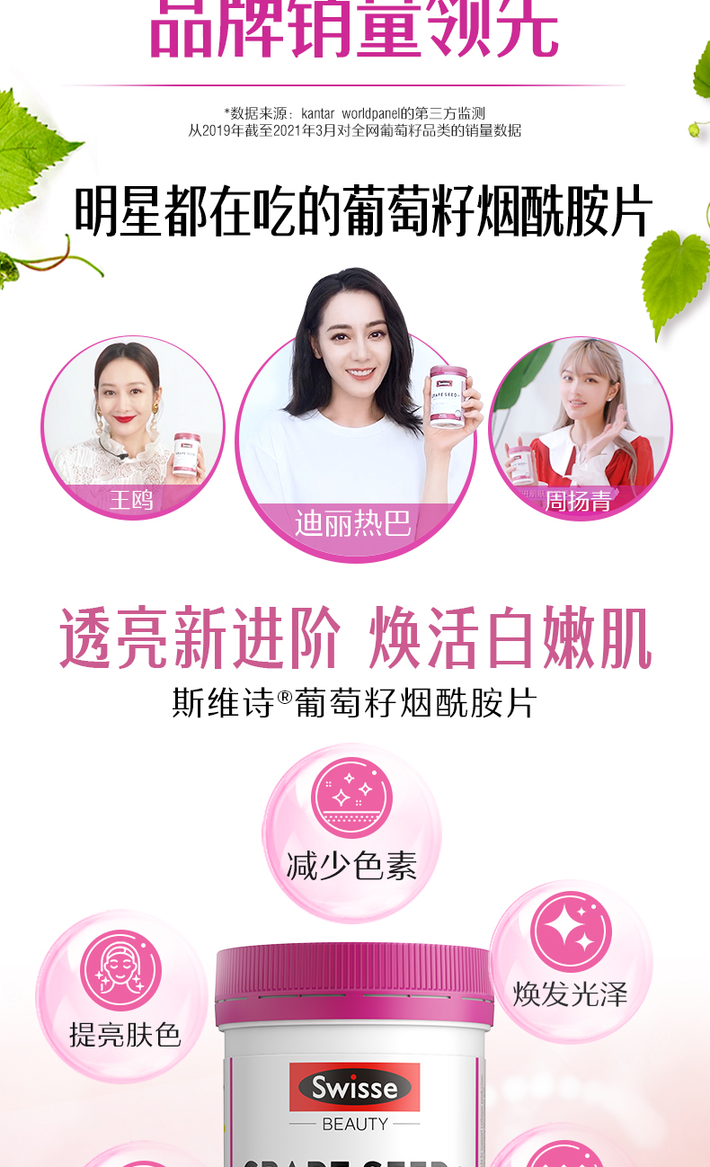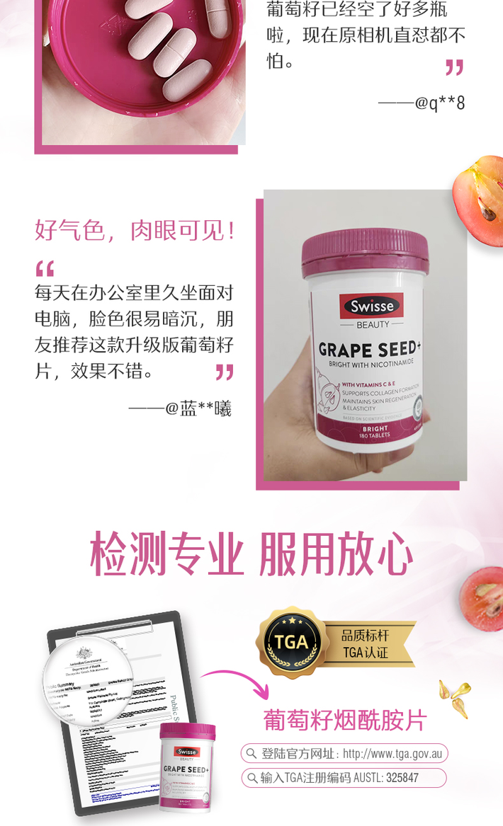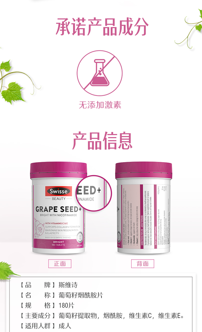 【保税仓】澳洲Swisse葡萄籽烟酰胺片180粒 含原花青素及烟酰胺 亮颜焕肤 有效期25年以后