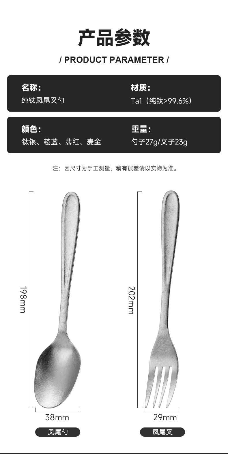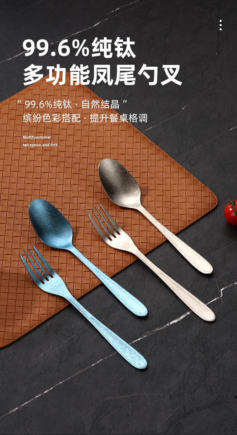 纯钛凤尾叉勺套装