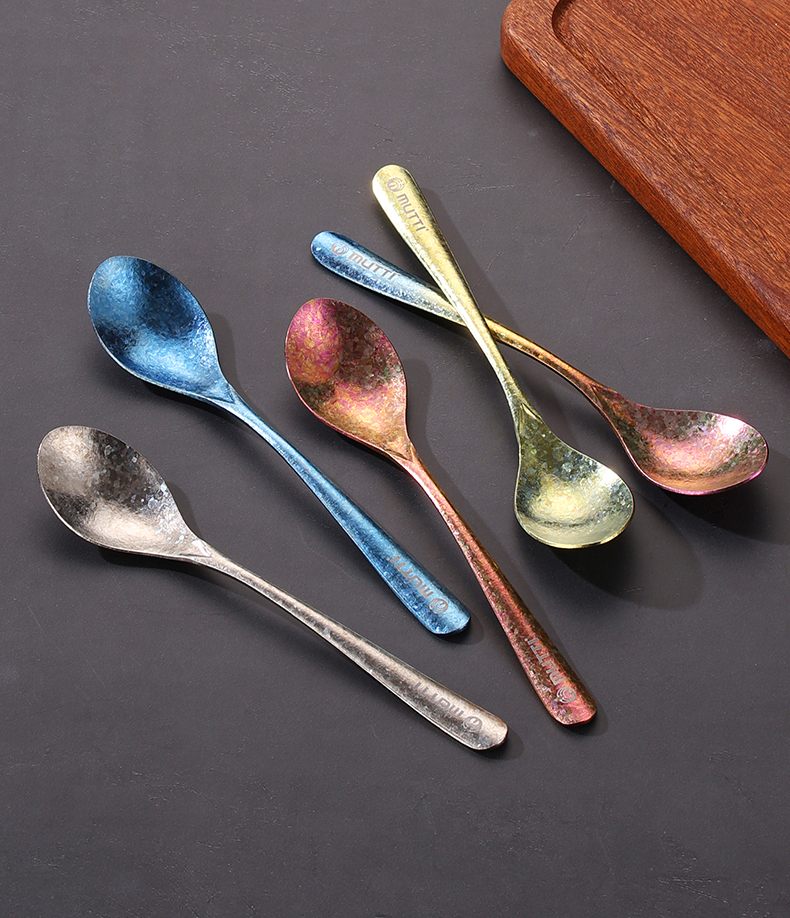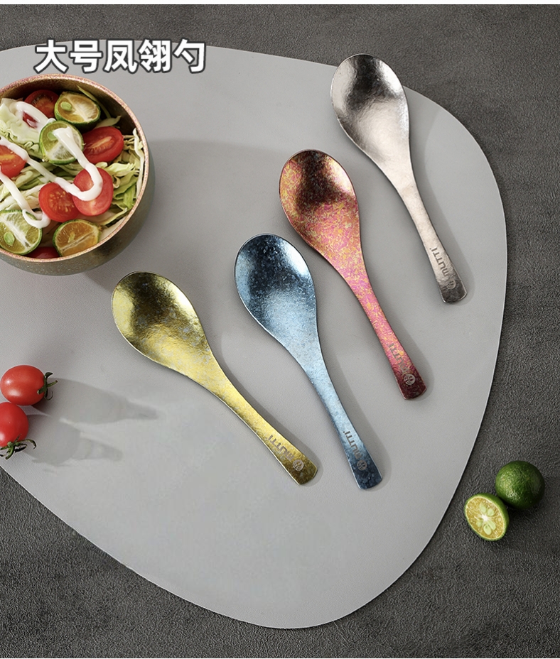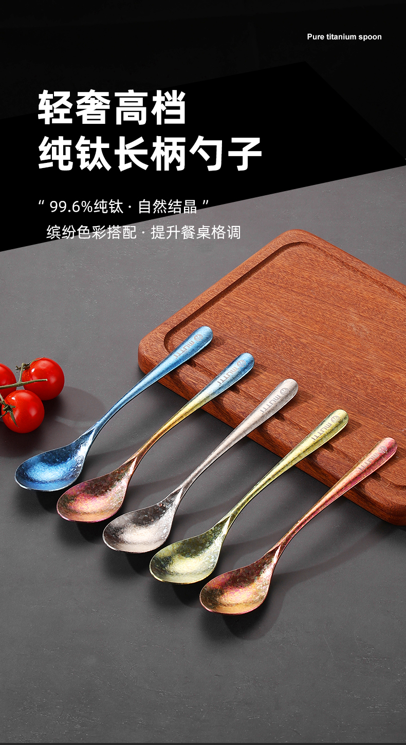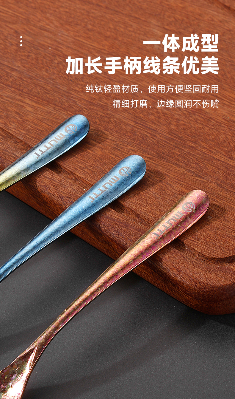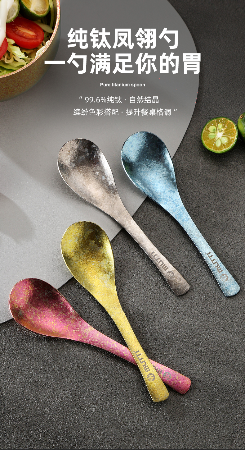 Mutti纯钛自然高温成色工艺凤羽勺叉彩色长柄勺子纯钛筷子