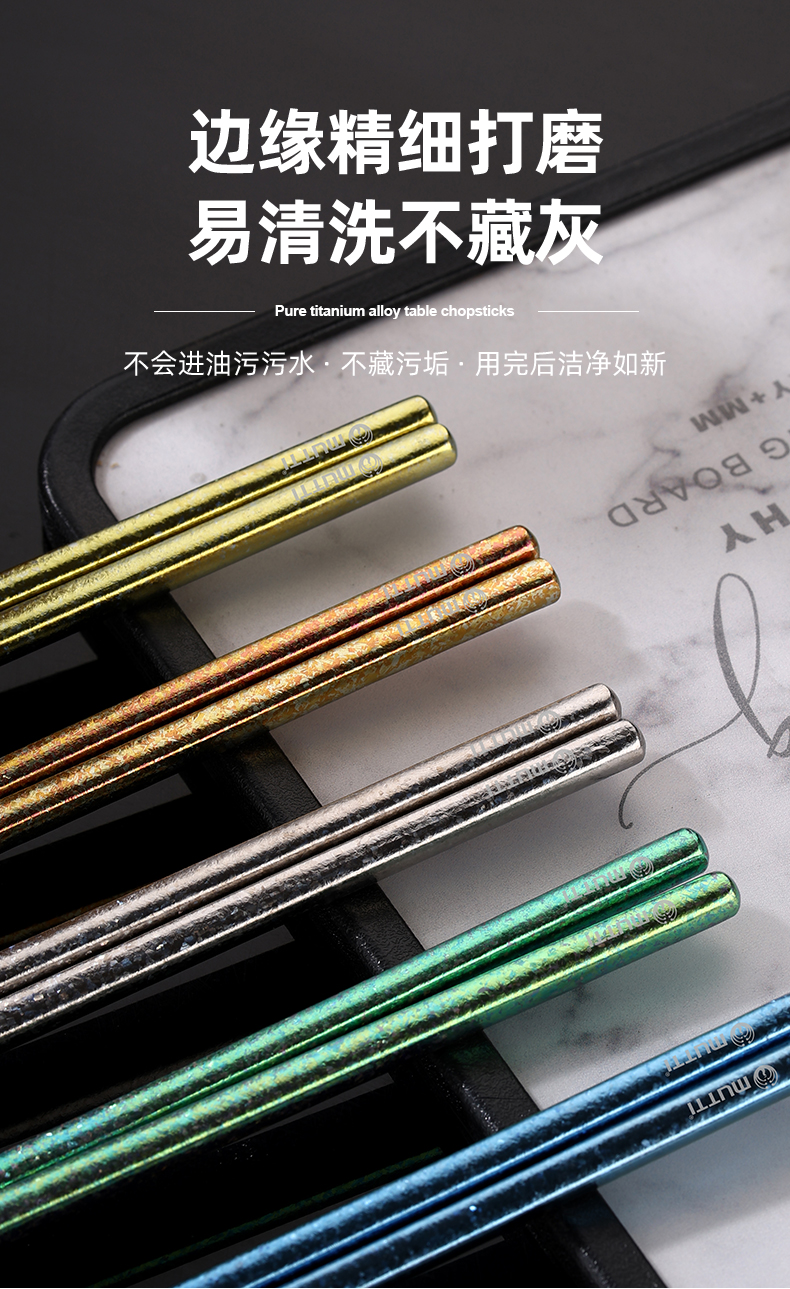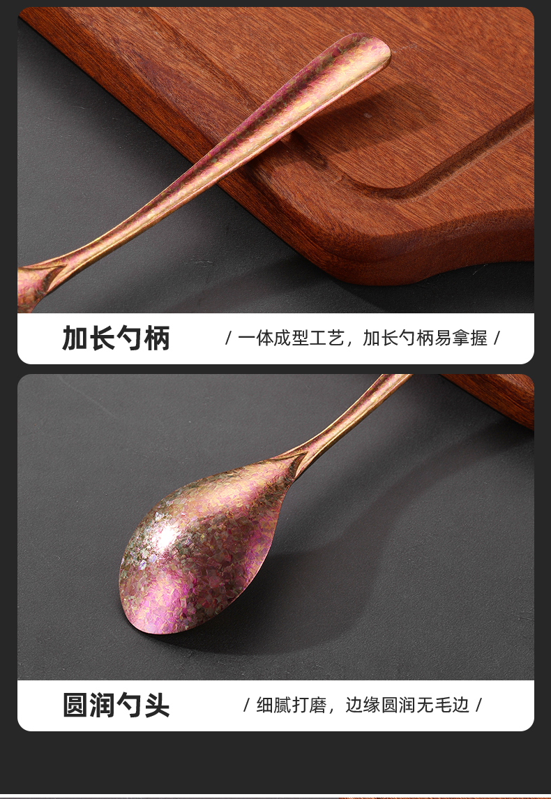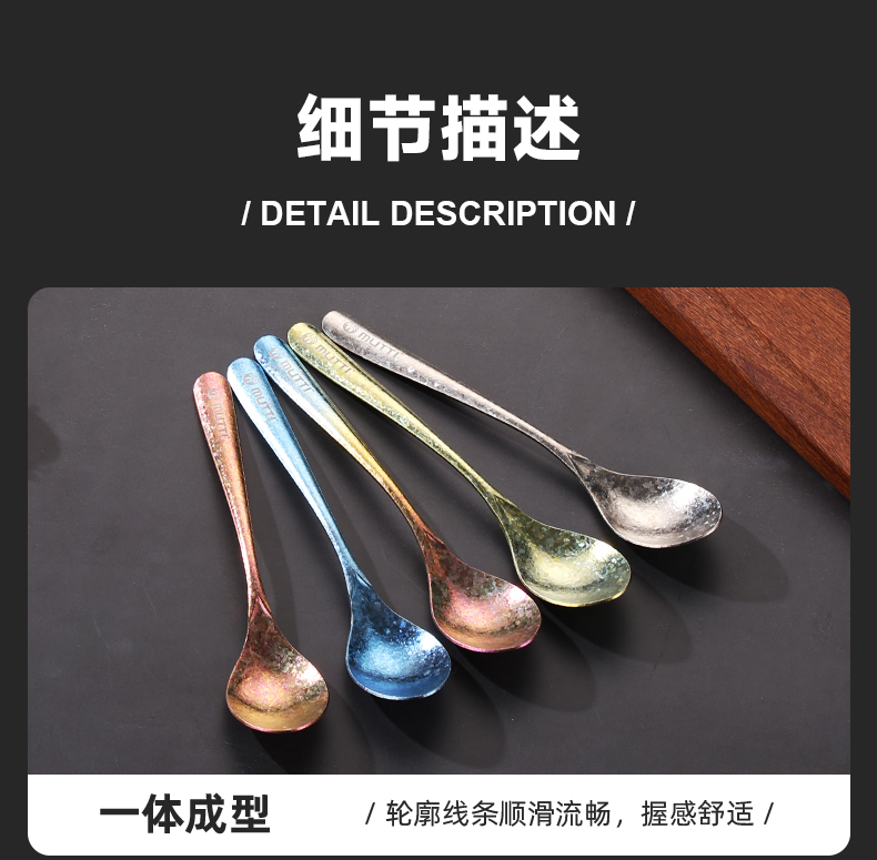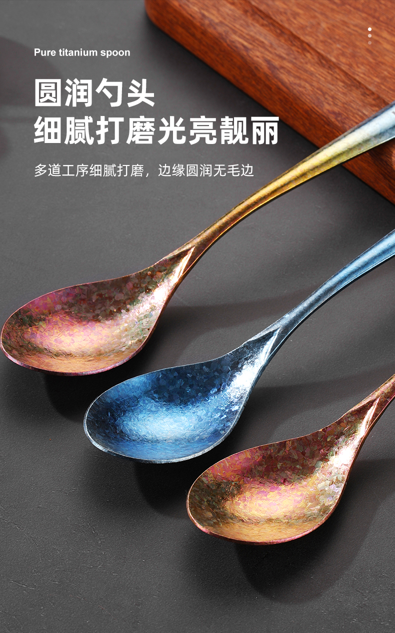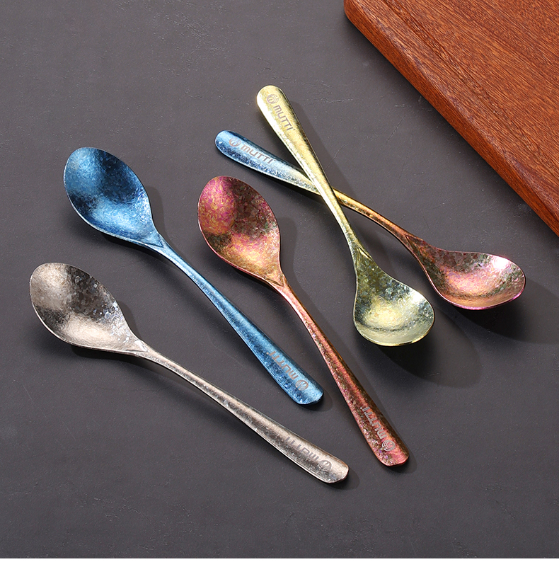 Mutti纯钛自然高温成色工艺凤羽勺叉彩色长柄勺子纯钛筷子