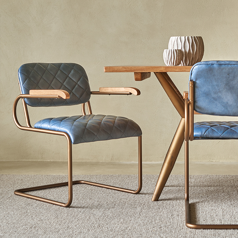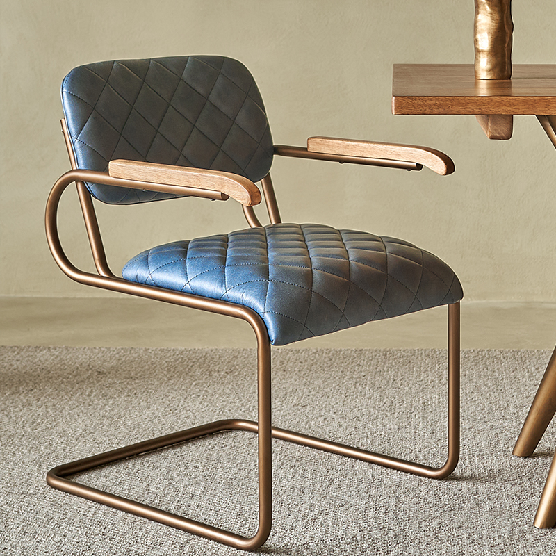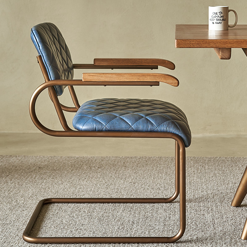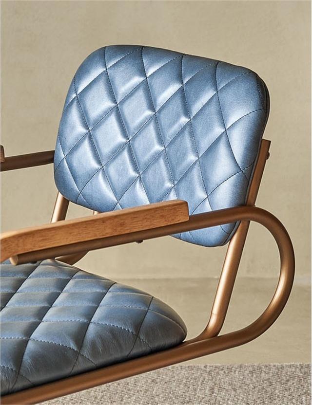 主材:3号色铁架/新蓝色玛斯特皮/银灰色木扶手