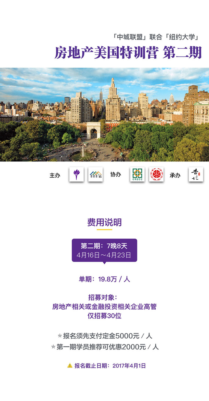 【定金】 房地产美国特训营第二期 纽约大学×中城联盟