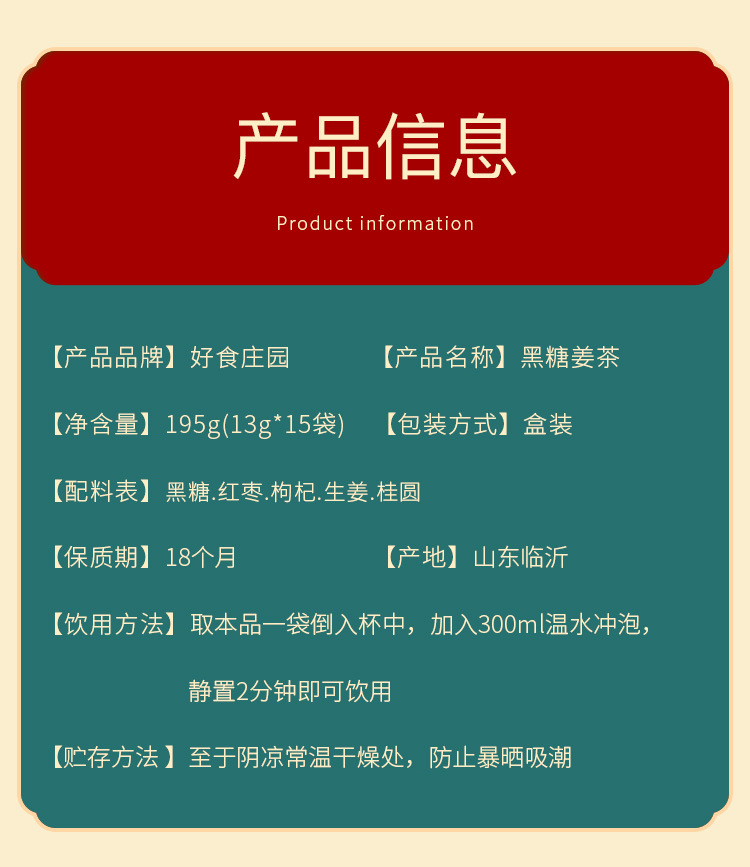 【好食庄园】黑糖姜茶 195g 原味生姜汁红枣枸杞软糖非散装红糖