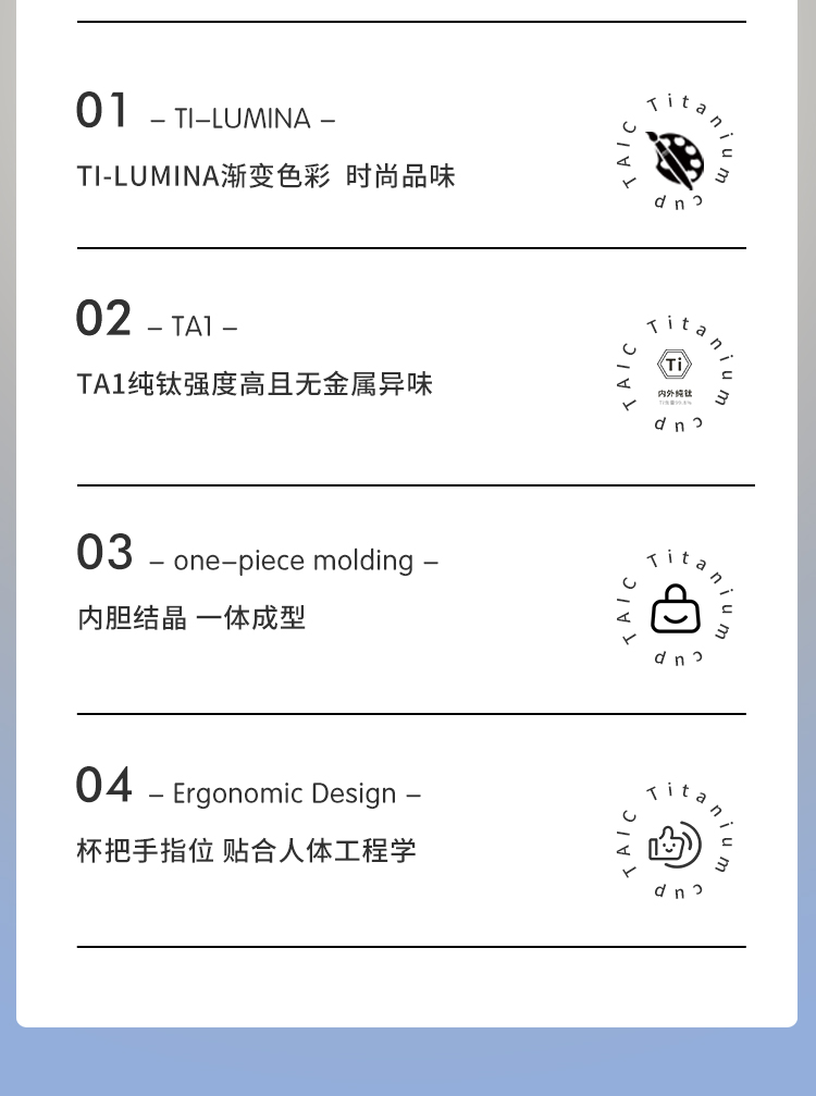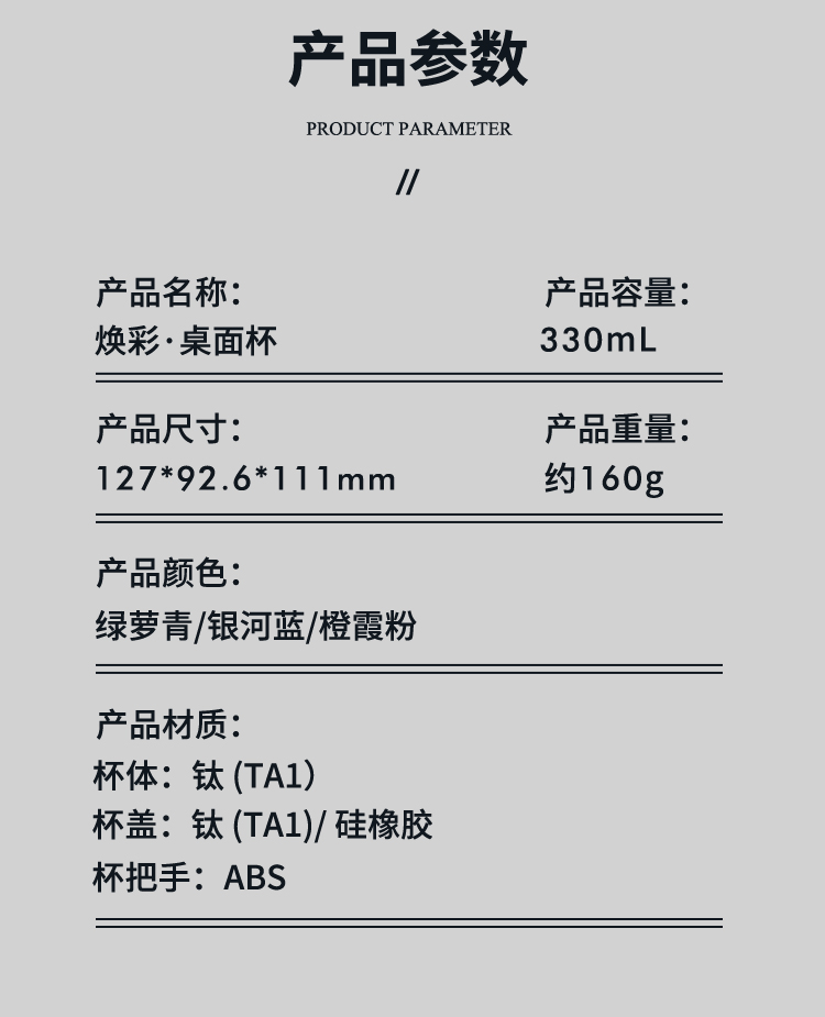 【TAIC 太可】纯钛焕彩桌面杯早餐杯牛奶杯 330ml