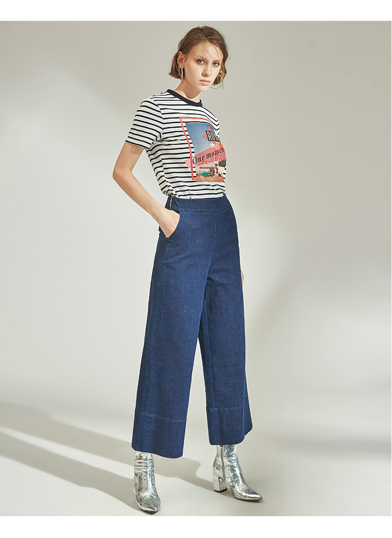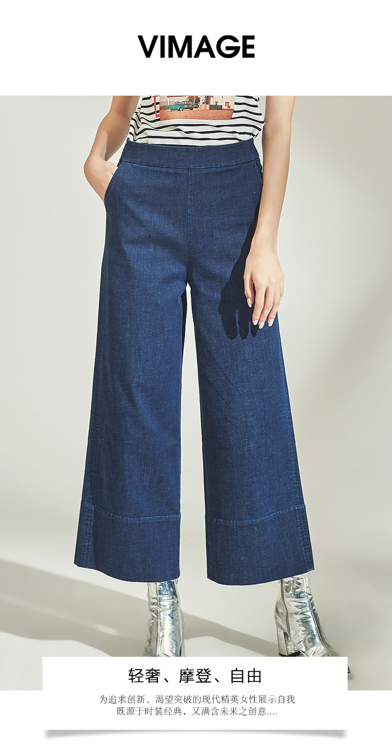 VIMAGE纬漫纪女装初秋季新品纯棉复古藏肉显瘦中高腰阔腿长裤V1005623