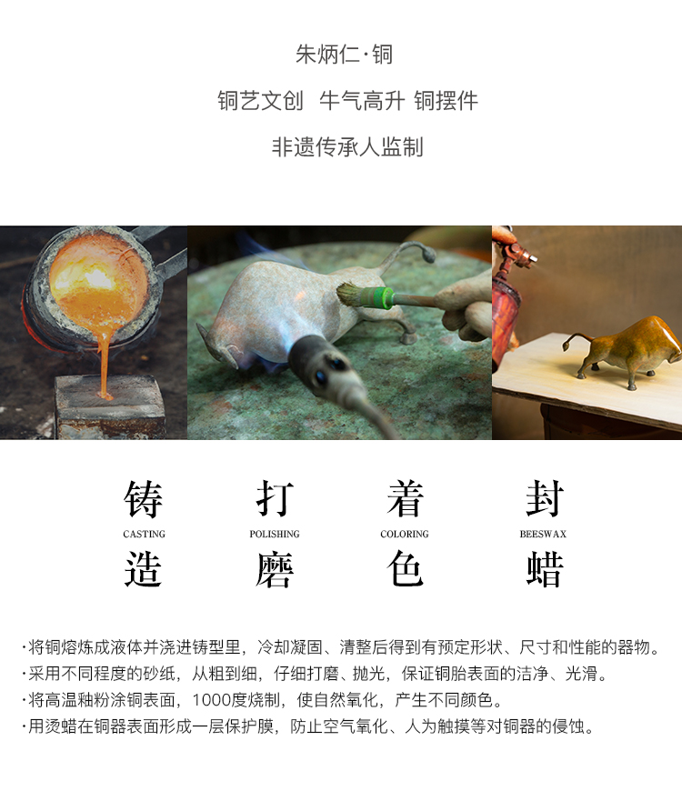 朱炳仁·铜 精铜 牛气高升 非遗家居牛年新品摆件 商品图8