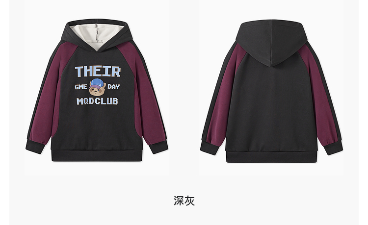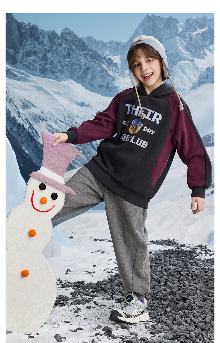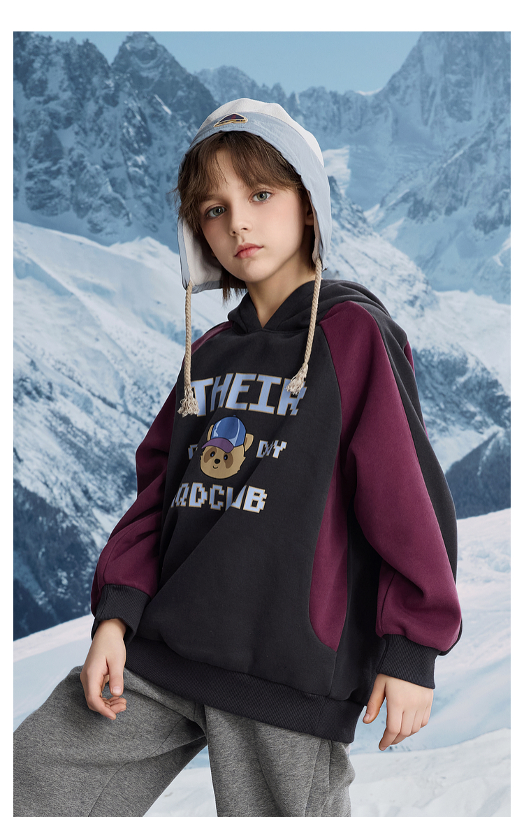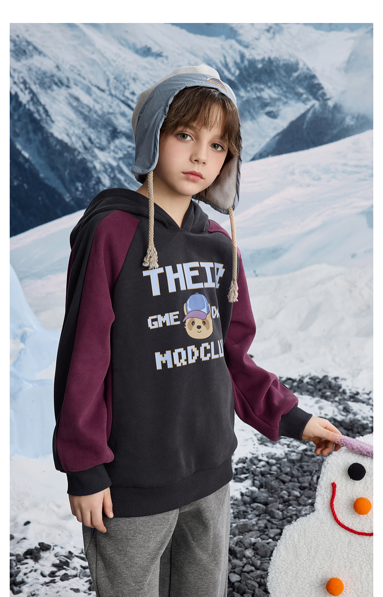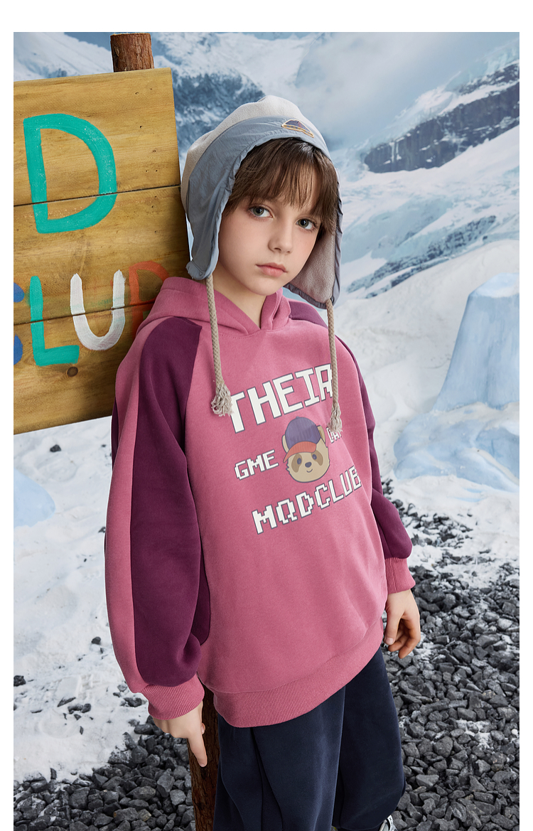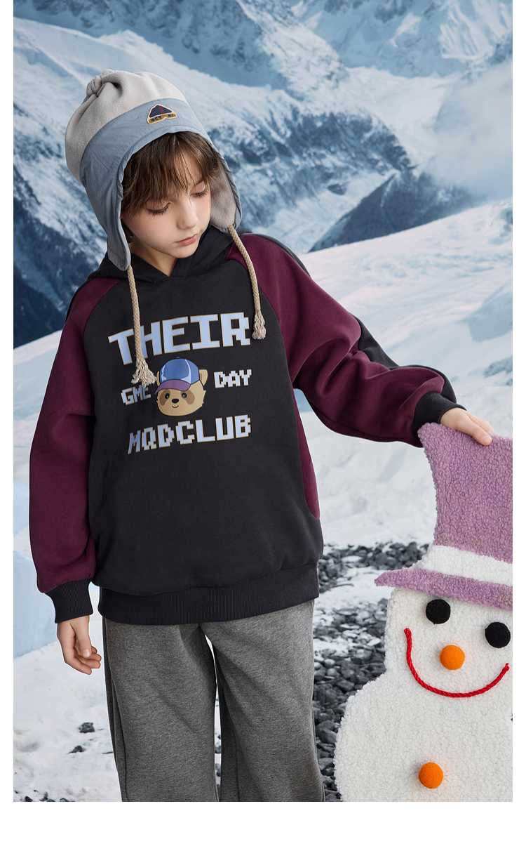 【MQD】男童冬季新品学院风中大童连帽女童字母插肩袖加绒卫衣