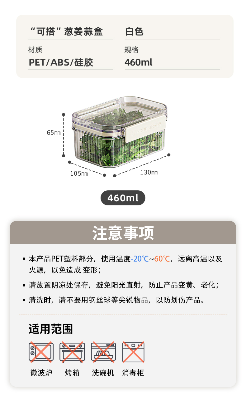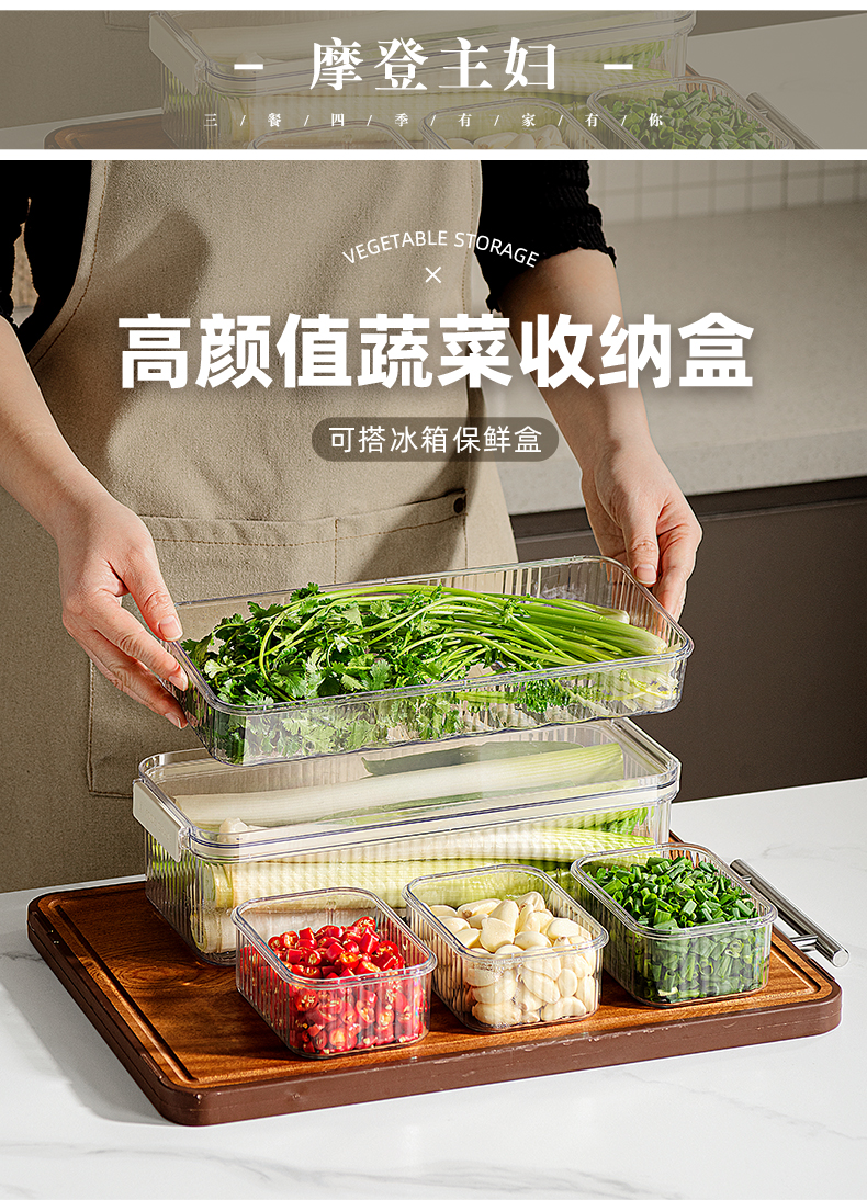 摩登主妇冰箱用收纳盒葱姜蒜整理盒食品级厨房专用备菜神器保鲜盒