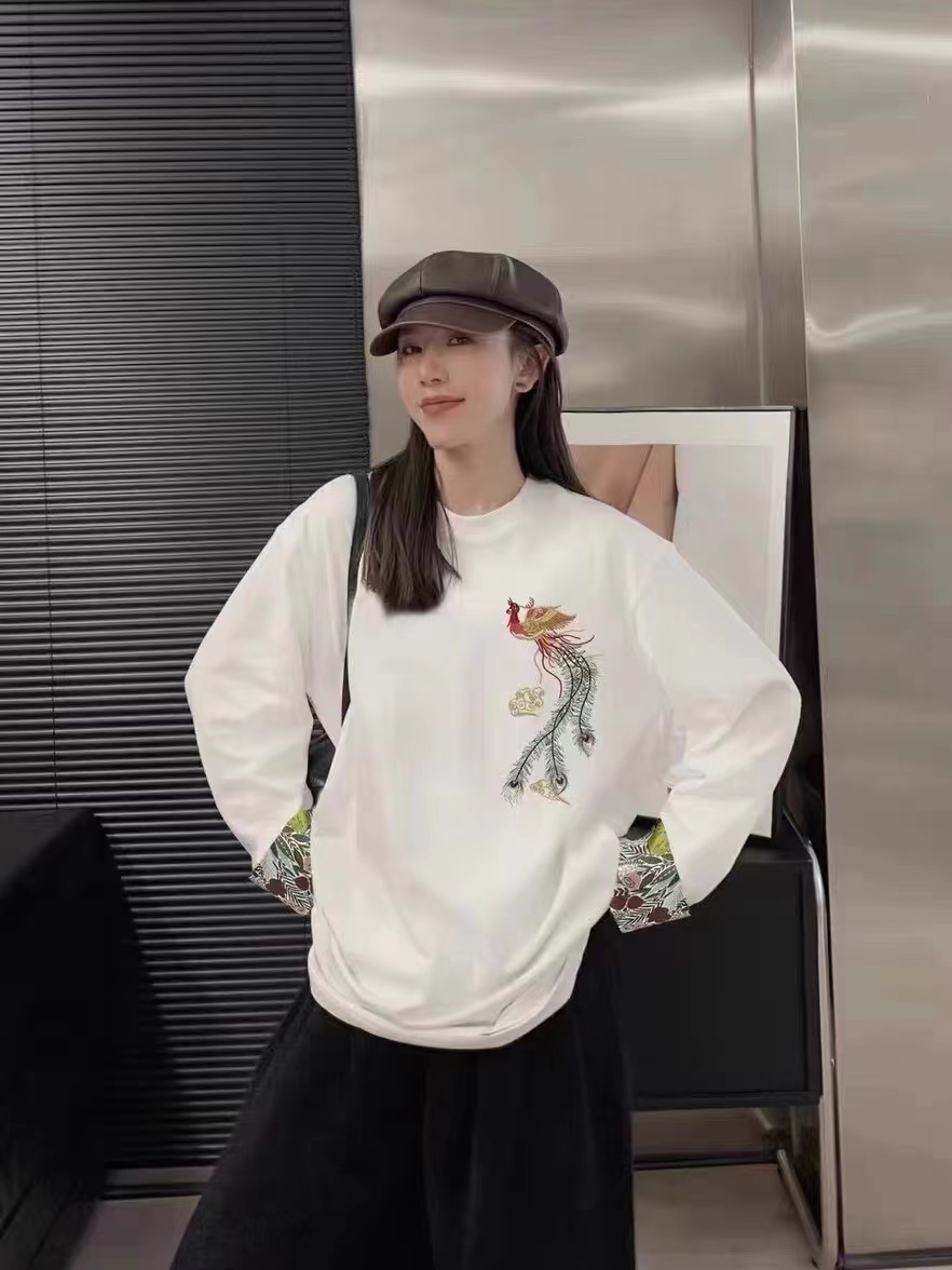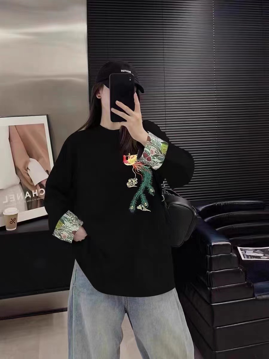 清仓促(微脏)~2563国风重工刺绣中长60%棉小衫上衣-喜出