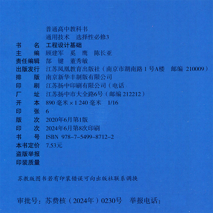 2026年 通用技术 选择性必修3 工程设计基础 必修三 苏教版 高中课本 普通高中教科书 江苏凤凰教育出版社