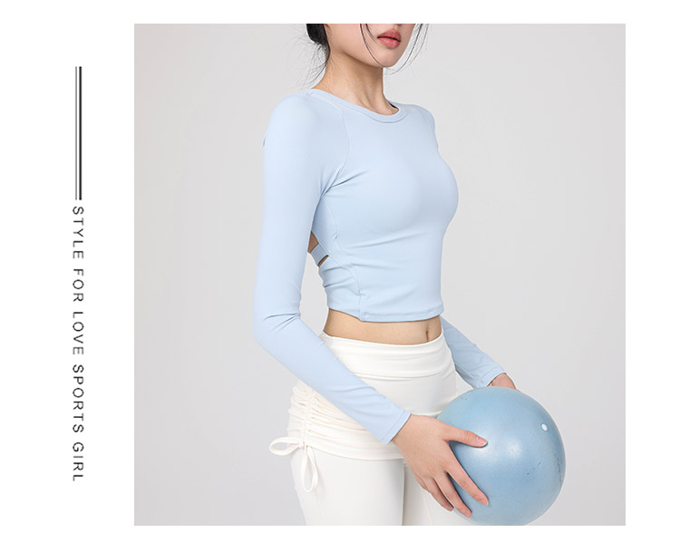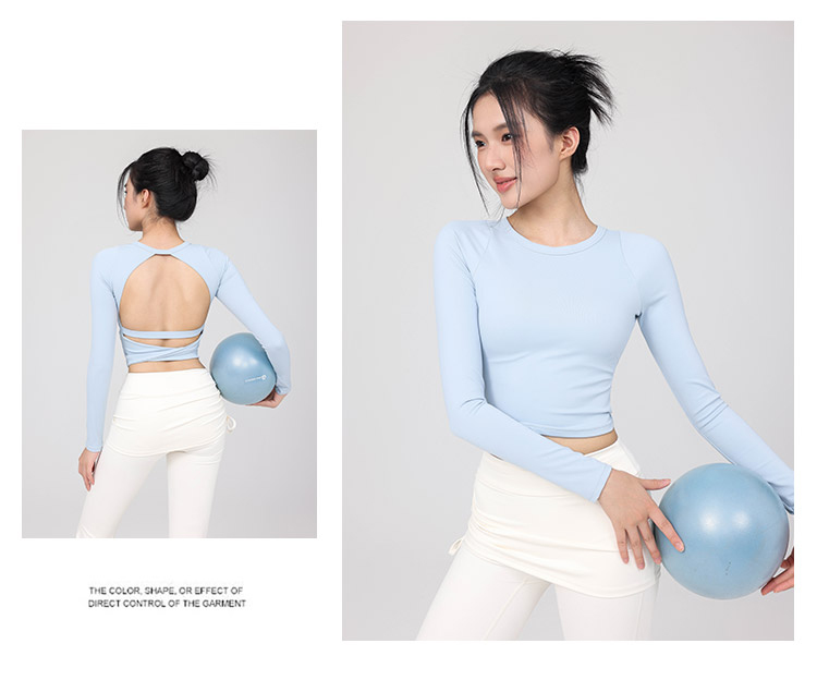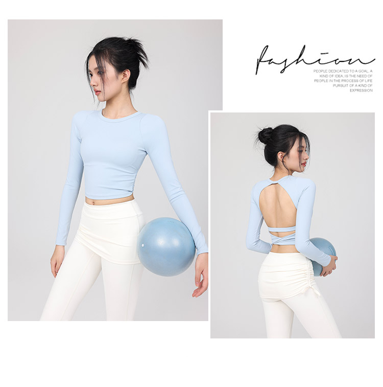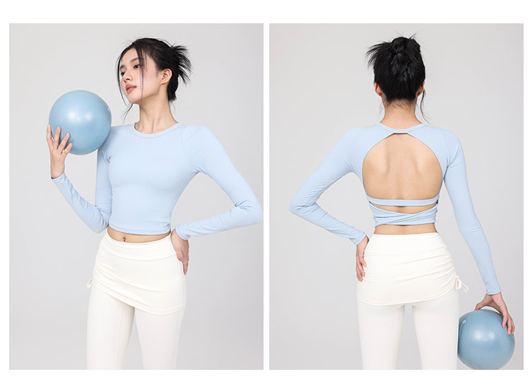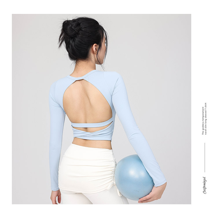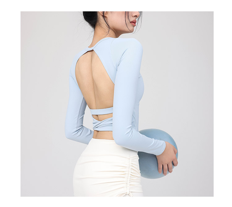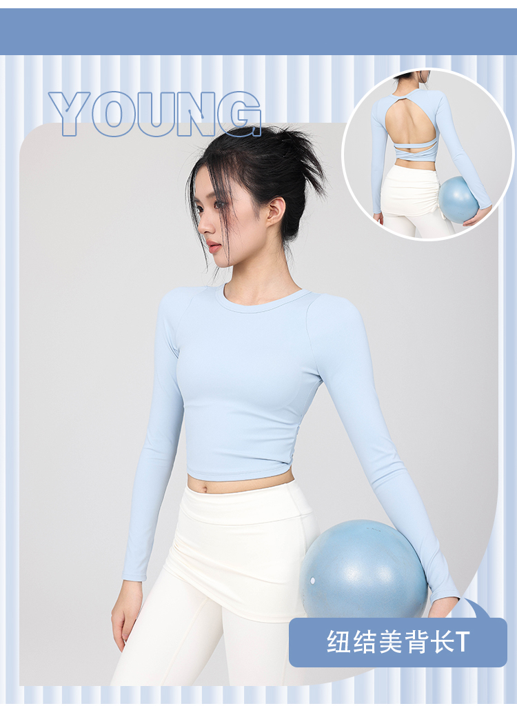 跃牌【禅语梵心】云感美背纽结镂空运动T恤女长袖带胸垫瑜珈服上衣WX5588