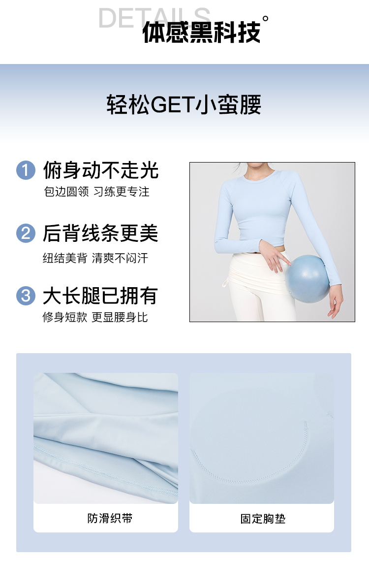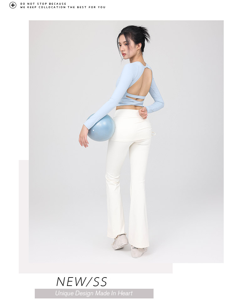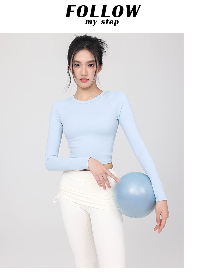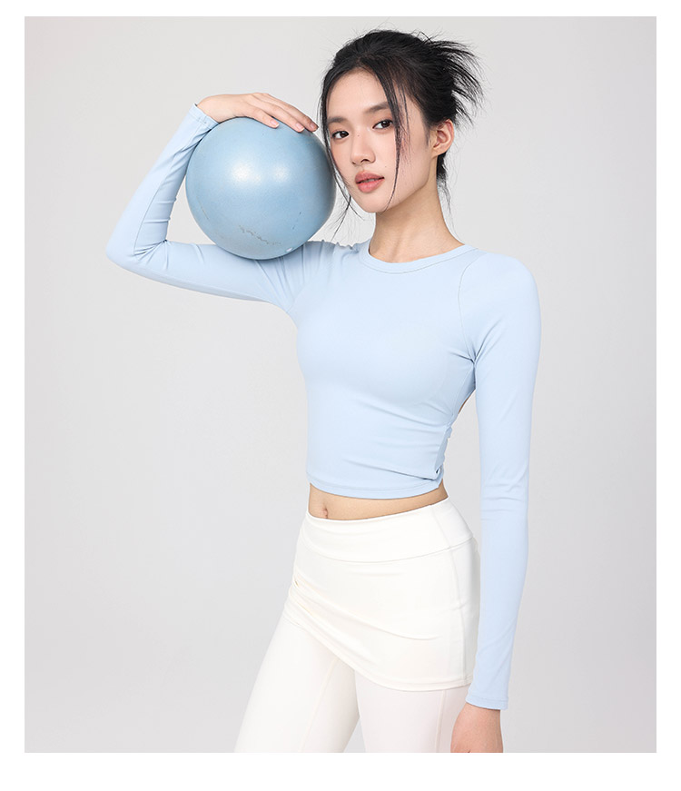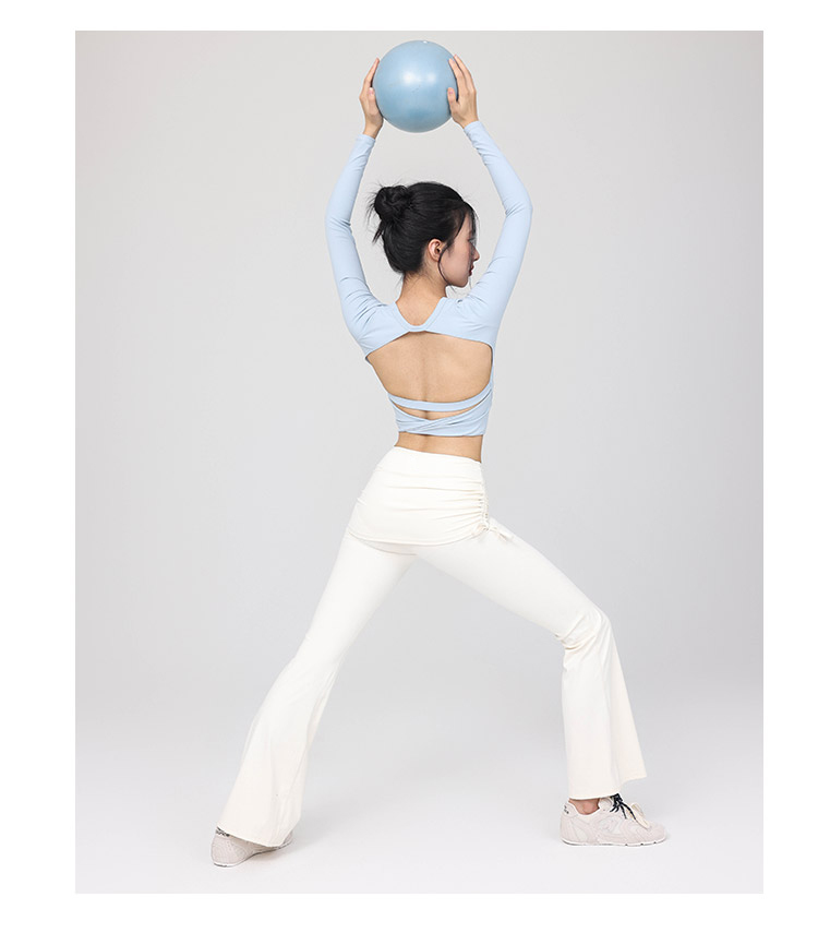 跃牌【禅语梵心】云感美背纽结镂空运动T恤女长袖带胸垫瑜珈服上衣WX5588