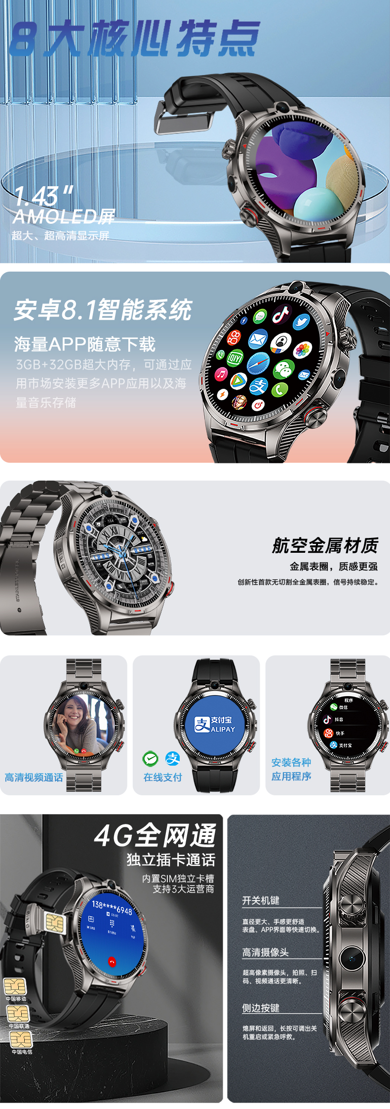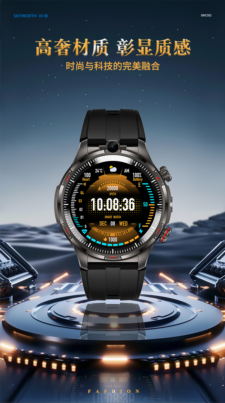 疯抢中!!能打电话/刷抖音【中国500强 创维S4智能手表】可插卡4G全网通 登微信/玩游戏/下载APP/拍视频/防水/运动/健康监测等多功能 礼盒装