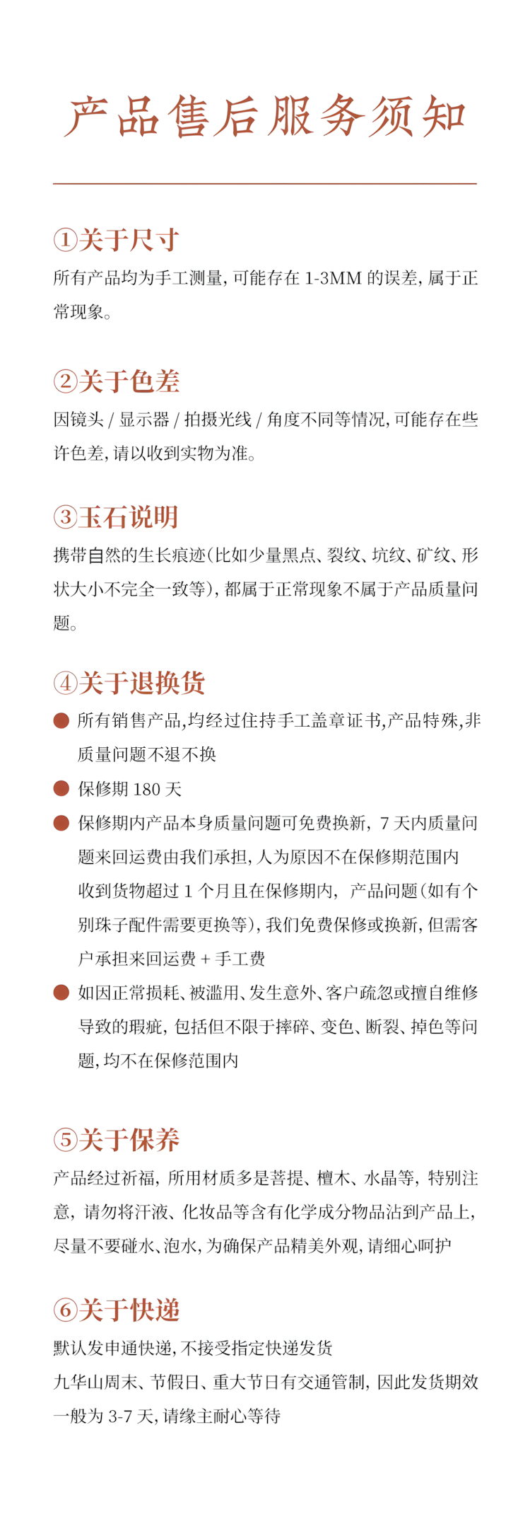 关于退换货:因手串均经过功课祝福,产品特殊,不支持7天无理由退换货,非质量原因不退不换